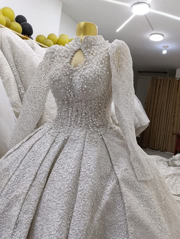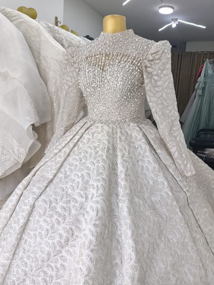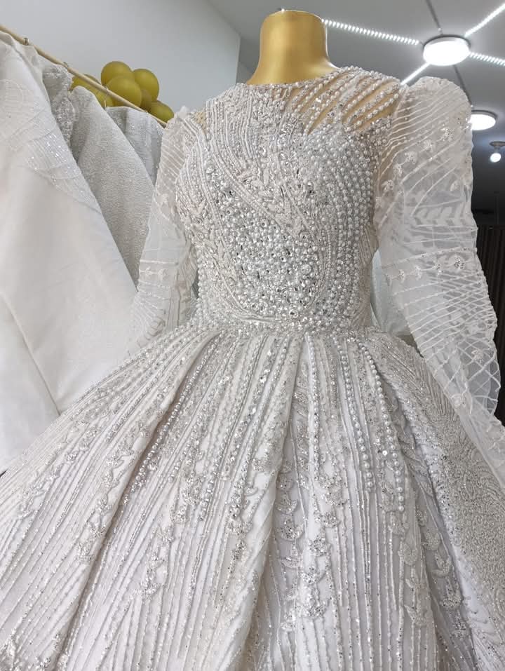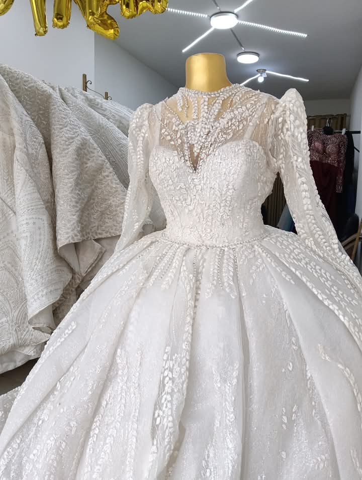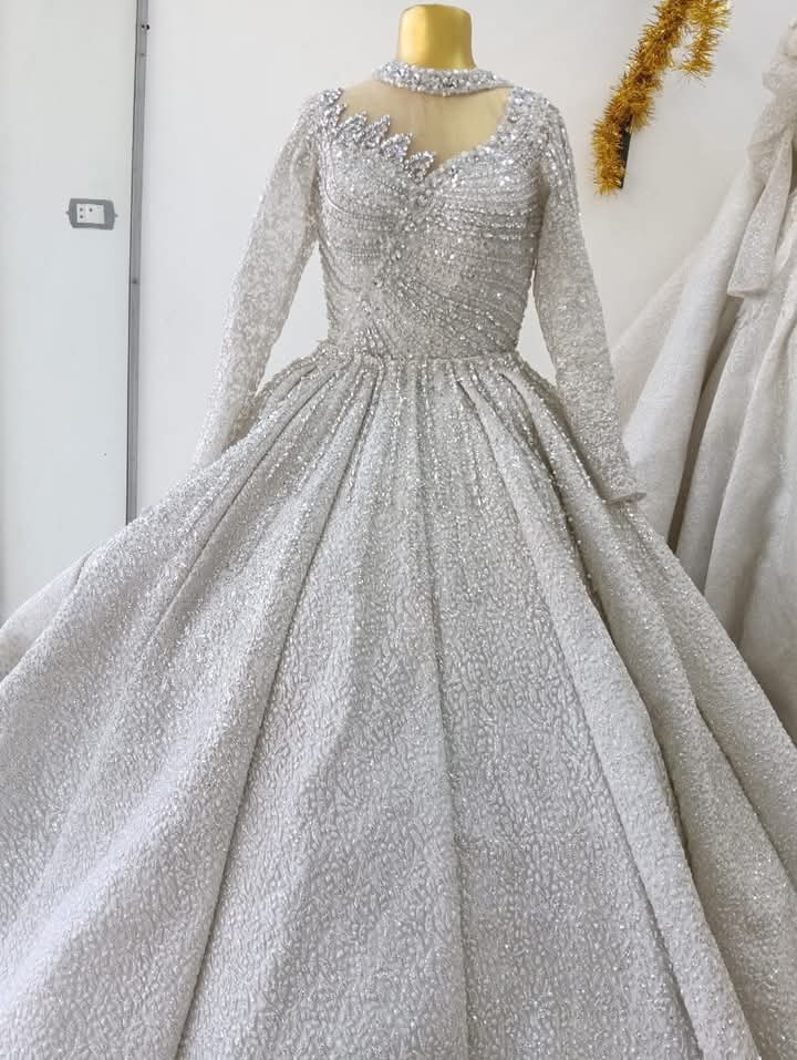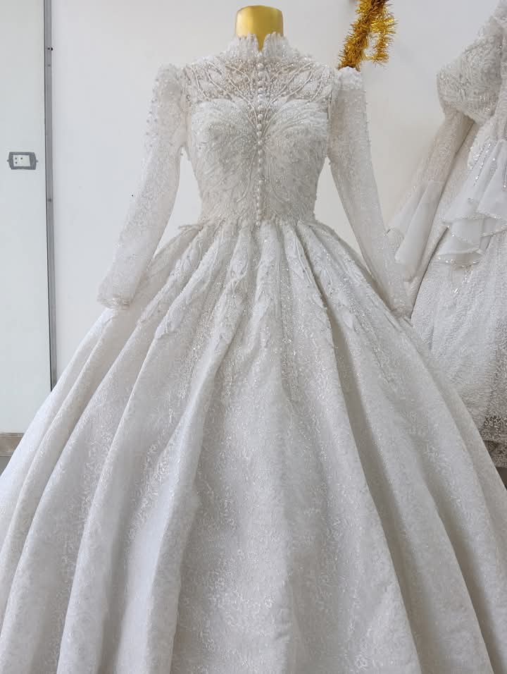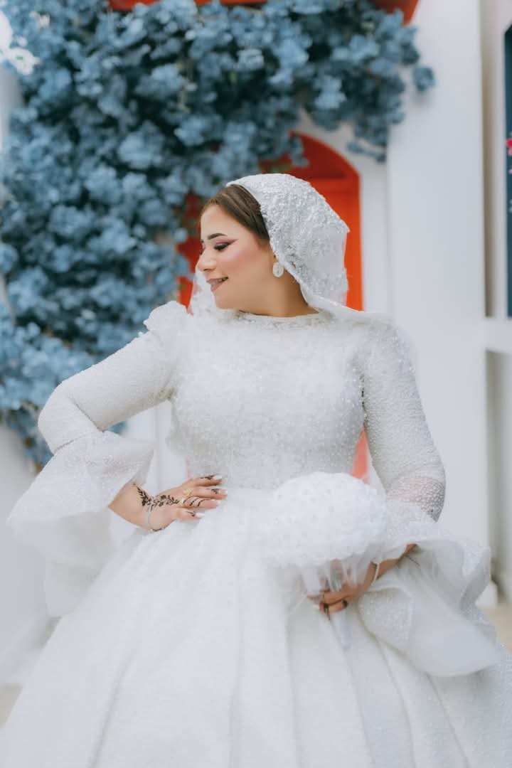 أما لو بنشوف الخامات، فغالبًا الفساتين دي بتتعامل بخامات زي التول أو الستان أو الشيفون، وممكن كمان يدخل فيها لمسات من الدانتيل أو الشغل اليدوي حسب التصميم. واللي بيفرق فعلًا في الفستان هو التفاصيل الصغيرة: فتحة الظهر، شكل الكم، نوع الطرحة، كل دي حاجات بتحدد شكله النهائي.