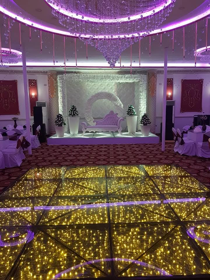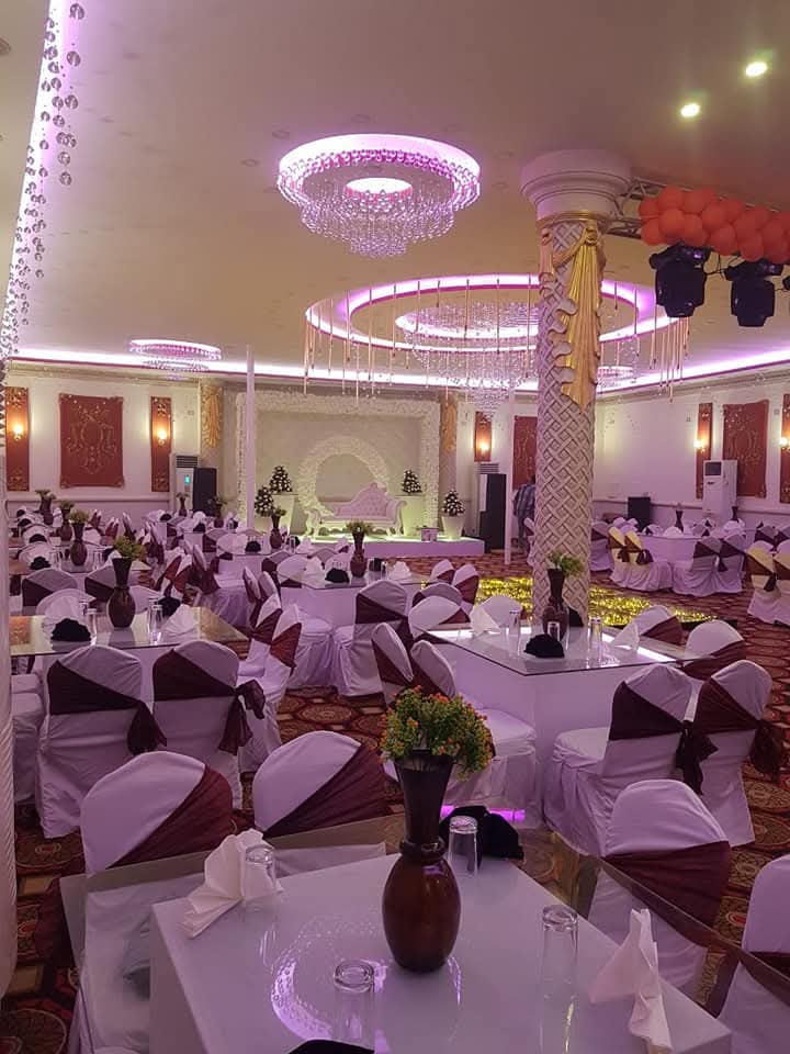 القاعة مجهزة بأحدث أنظمة الإضاءة والصوت اللي بتوفر أجواء مثالية تناسب جميع أنواع الاحتفالات والمناسبات الرسمية