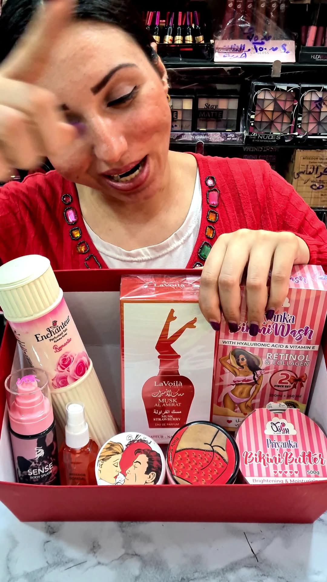 مكياج العيون واخد اهتمام خاص في المحل. هتلاقي باليتات آيشادو بدرجات وألوان كتيرة، من الكلاسيكية الترابية لحد الألوان الجريئة اللي تناسب أي لوك عصري. وكمان فيه ماسكارا بتطوّل وتكثّف الرموش، وآيلاينر بأنواع مختلفة زي القلم والسائل والجيل، علشان تحددي عينيكي بالطريقة اللي تفضليها. ومعاهم كمان هايلايتر وكونتور بدرجات مختلفة يساعدوك على إبراز ملامح وشك وإضافة لمسة إشراقة على بشرتك.