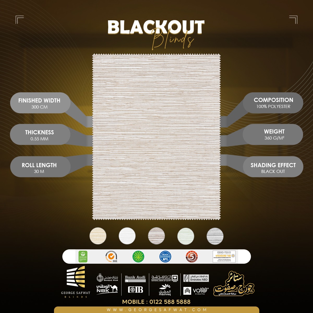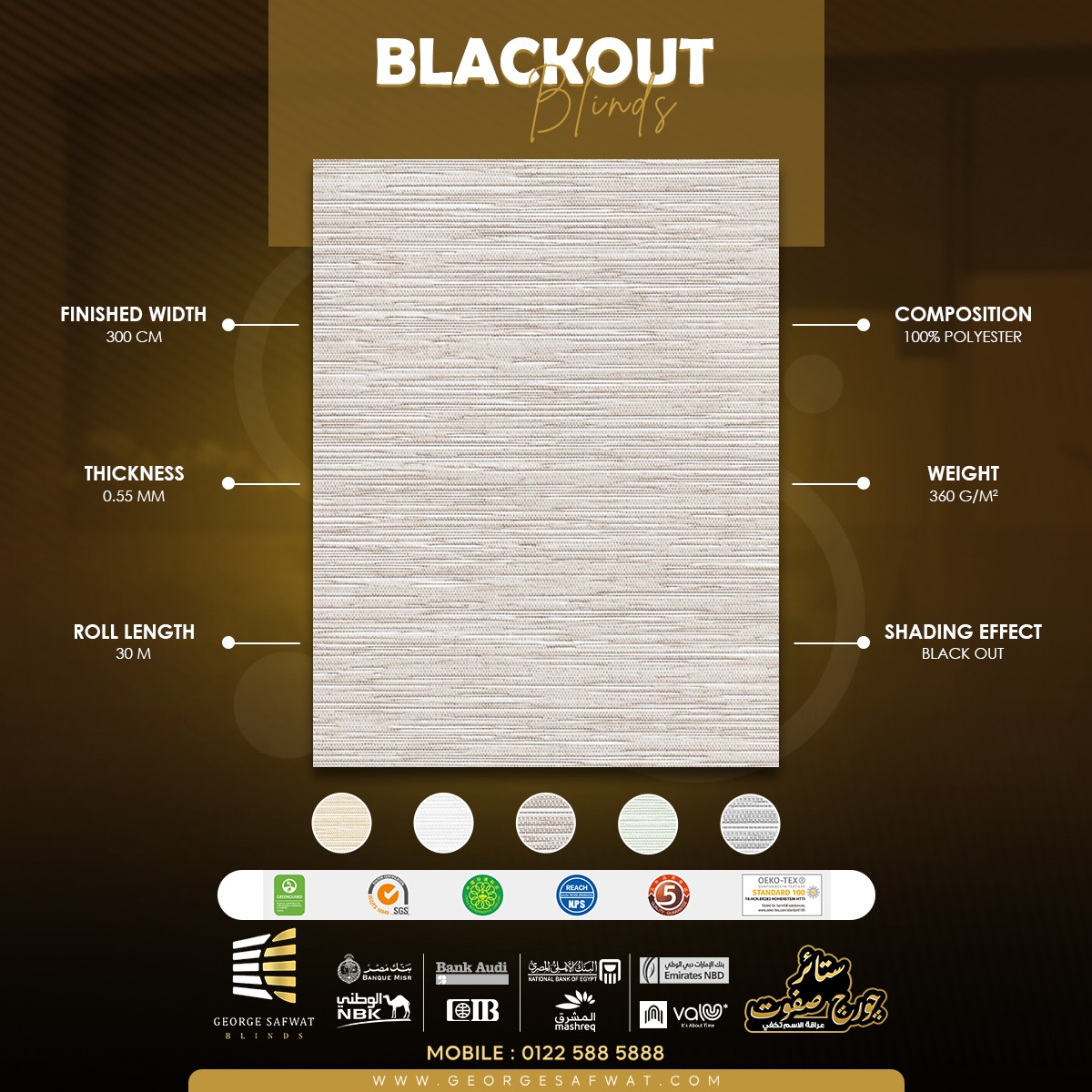 • ستائر بلاك أوت: مثالية لغرف النوم أو المساحات اللي بتحتاج هدوء وتعتيم كامل.