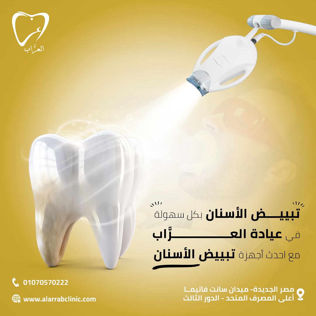 كمان، Alarrab Dental Clinic بتوفر تنظيف عميق للأسنان، اللي مش بس بيحافظ على صحة لثتك، لكنه كمان بيزيل التراكمات الجيرية وبيخلي أسنانك تلمع بنظافة.