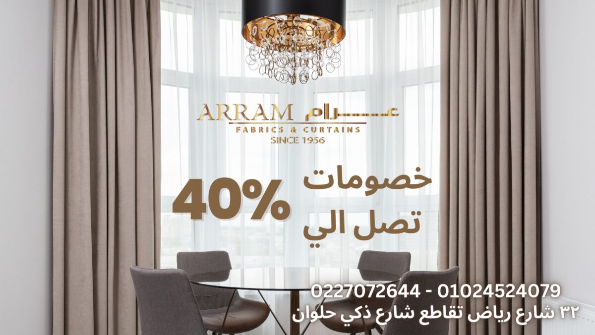 من أول ما تدخل محل عرام هتحس إنك في مكان منظم وأنيق، كل حاجة فيه متقسمة بعناية. الأقمشة هناك معروضة بطريقة تخليك تختار بسهولة وتشوف الخامات بنفسك. عندهم تشكيلات ضخمة من الأقمشة اللي تناسب كل الأذواق، سواء الموديلات المودرن البسيطة اللي ألوانها ناعمة ودرجاتها فاتحة زي الرمادي، البيج، والأوف وايت، أو الستاير الكلاسيك اللي فيها لمسات فخامة بخامات زي القطيفة، الحرير، والتل المطرز اللي بتدي إحساس بالدفا والرقي.