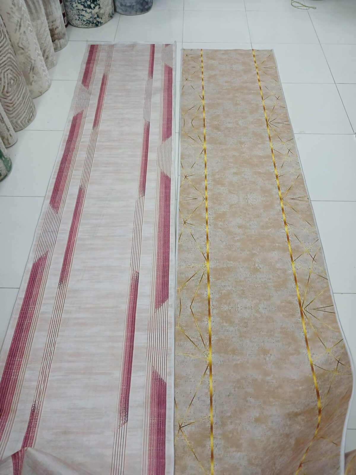 الجميل إن الخامات اللي بيقدمها المكان مش بس شكلها حلو، لكن كمان عملية جدًا. في خامات ناعمة ومريحة تحت الرجل تناسب غرف النوم وتدي إحساس دافي، وفي خامات أقوى تناسب الصالة والممرات اللي عليها ضغط طول اليوم. المتانة دي بتخلي القطعة تعيش فترة طويلة من غير ما تفقد رونقها أو شكلها، وده مهم لأي حد داخل على الجواز ومش عايز يغير الفرش الأرضي كل شوية.