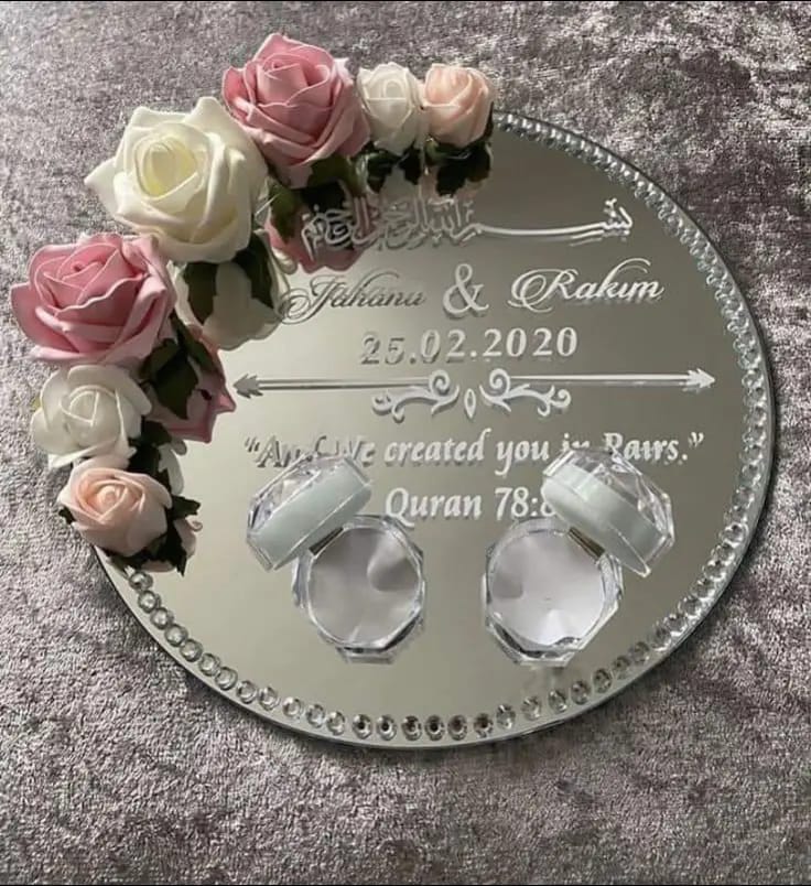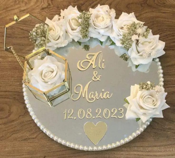غير المنديل والبصمة وصينية الشبكة Hanen gallery كمان بتوفر تشكيلة واسعة من اكسسوارات الفرح التانية زي حامل الدبلة المصنوع من زجاج شفاف او كريستال صغير يدي رقة للترابيزه وطقم خاتم مودرن بيشتغل على اي ديكور سواء كان كلاسيكي او عصري وكمان لوحات تذكارية صغيرة مطبوعة بالوان مائية تحمل صور ضحكات الضيوف وكلماتهم الرقيقة وفوانيس رومانسية بتشتغل بالبطاريه تضيف اضاءة خافتة ساحرة وحوامل ورد بتصاميم متداخلة بين المعدن المشغول يدويا او الكريستال اللي يلمع تحت اضواء المكان لو عايزين تنقلوا تجربة الكتب لاجواء اكتر دفء وبصمة فنية