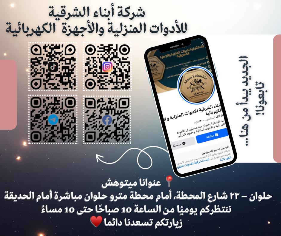 أبناء الشرقية للأدوات المنزلية من المحلات اللي ليها شهرة كبيرة في مجال الرفايع ومستلزمات البيت، وبيتميّز بتنوع منتجاته اللي بتناسب كل بيت مصري سواء للعرايس اللي بتجهّز أو للأسر اللي بتحب تجدّد أدواتها وتخلي بيتها أنيق ومنظم. المكان بيهتم بتقديم منتجات عالية الجودة بأسعار مناسبة عشان يناسب كل الفئات.