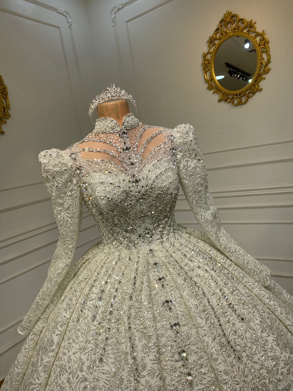 في أتيليه دينا، مش بس هتلاقي الفساتين اللي بتحلمي بيها، لكن كمان مجموعة رائعة من الإكسسوارات اللي بتكمل جمالك يوم فرحك. الطرح، التيجان، والأحزمة كلها متوفرة بأجمل التصميمات اللي بتضيف لمسة من السحر والرقي لفستانك.
