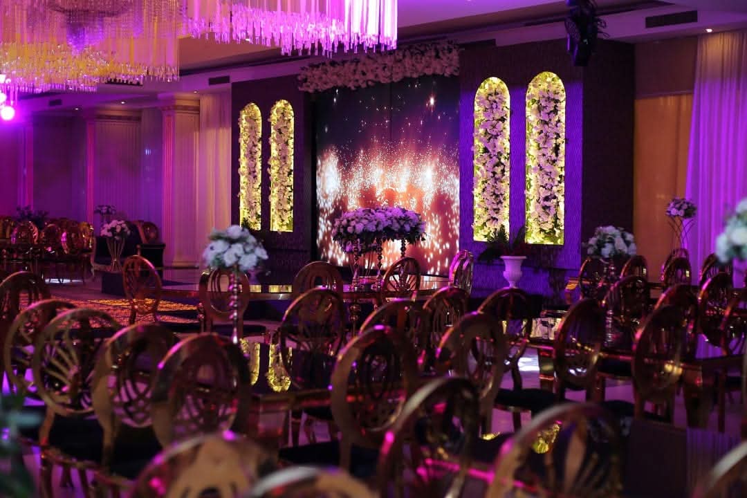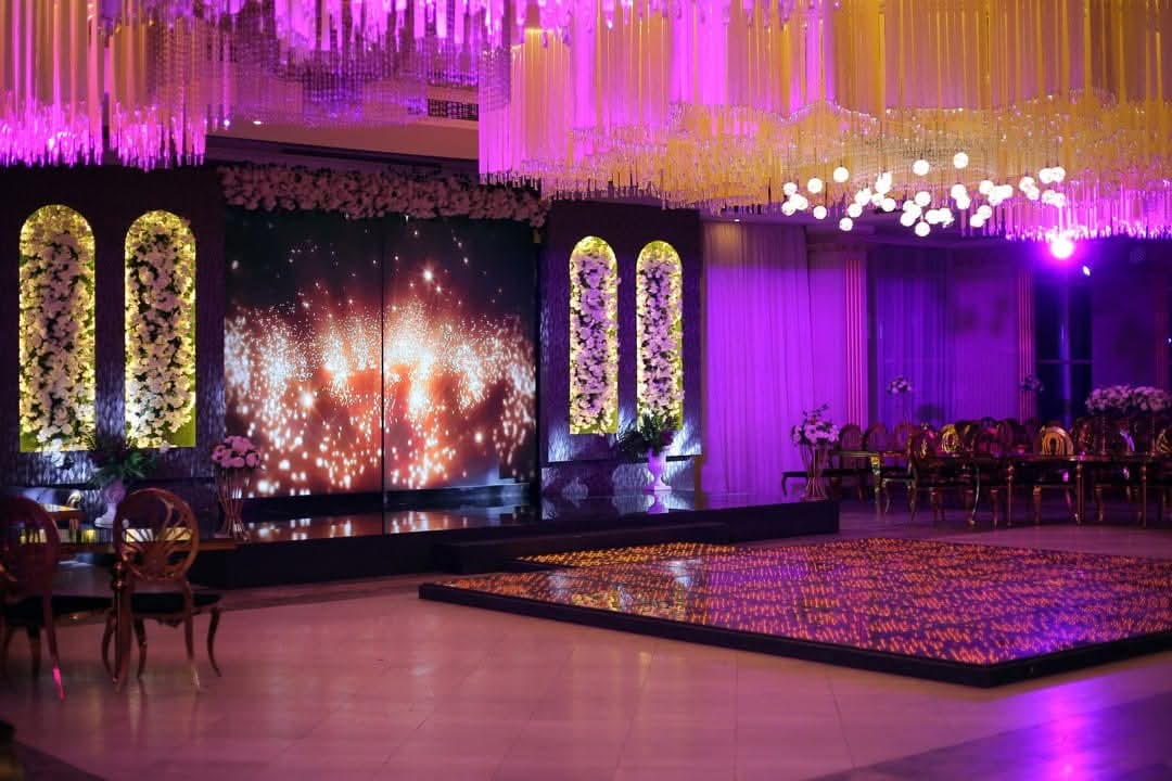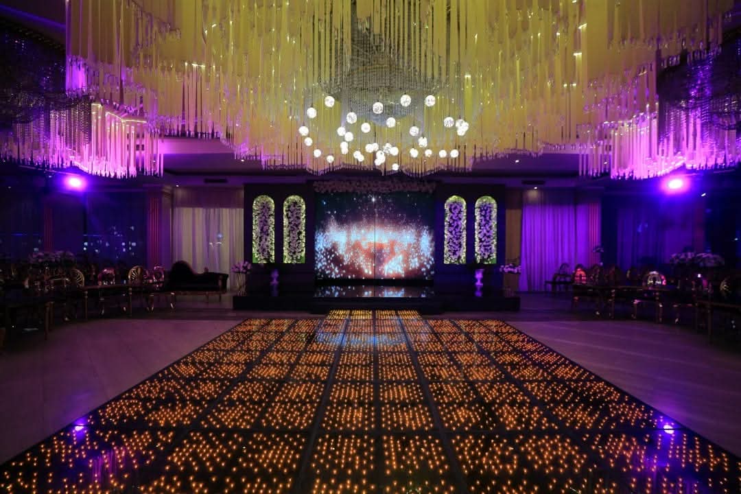 القاعة مجهزة بأحدث أنظمة الصوت والإضاءة اللي بتوفر تجربة سمعية وبصرية متميزة تناسب جميع أنواع المناسبات سواء كانت حفلات زفاف أو فعاليات رسمية