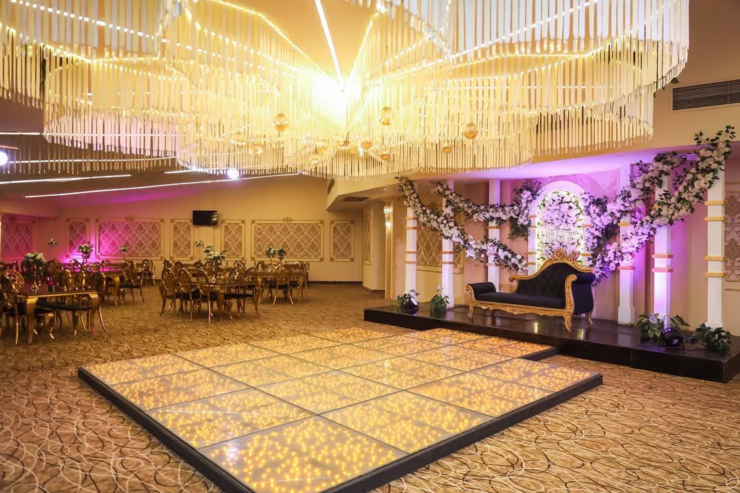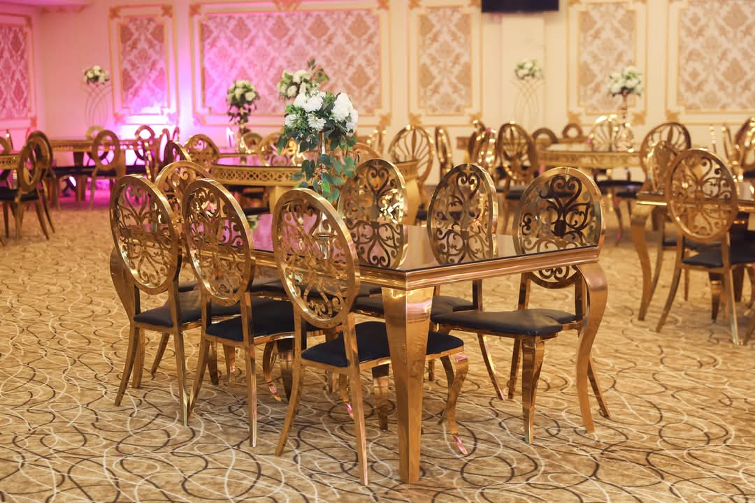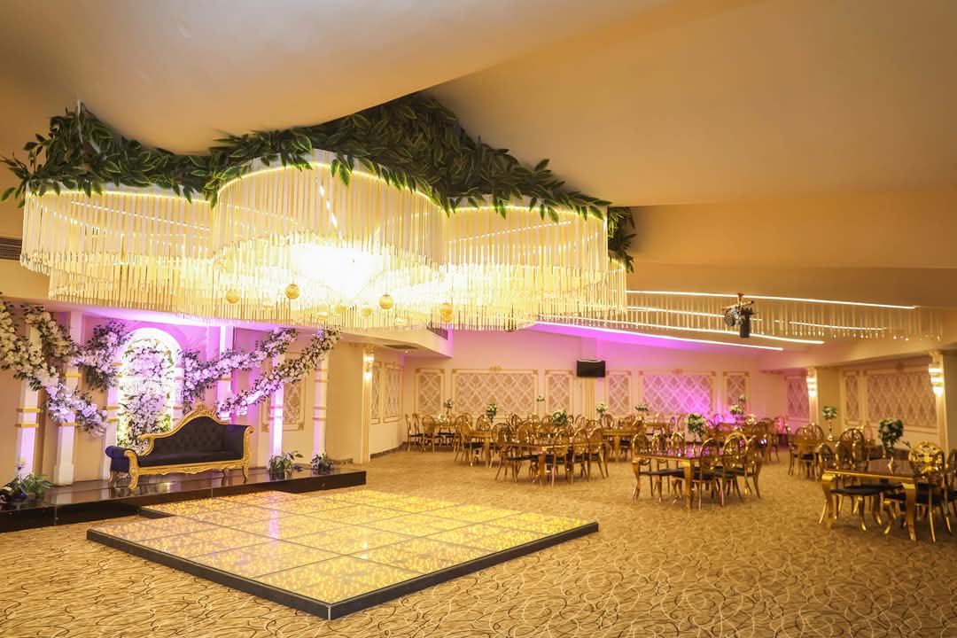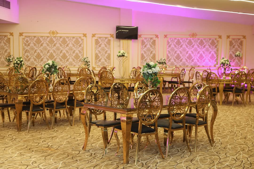 القاعة بتتميز بديكورات أنيقة ومساحات كبيرة بتناسب استضافة أعداد مختلفة من الضيوف مع توفير ترتيبات مرنة للطاولات والمقاعد حسب طبيعة الحدث