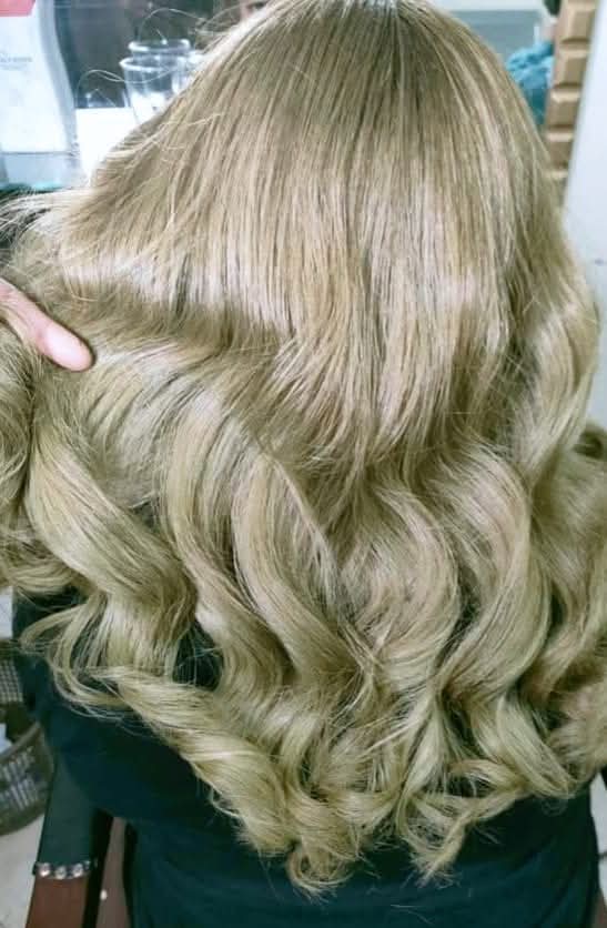 لو حابة تغيري لون شعرك، فيه تشكيلة كبيرة من الألوان، لكن دايمًا بيتأكدوا الأول من إن اللون مناسب لبشرتك. بيبدأوا باختبار على خصلة صغيرة، وبعدها الصبغة بتتعمل على مراحل علشان اللون يثبت والشعر يفضل صحي.
