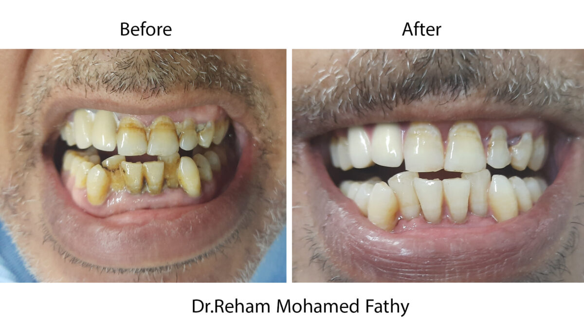 ما ننساش اللثة، لأن صحتها هي الأساس لأي علاج سنان ناجح. في العيادة بينظفوا جيوب اللثة تحت تخدير موضعي لو احتاج الأمر، وبيرشوا مضاد حيوي موضعي وبخاخ مطهر ينظم بيئة الفم ويمنع أي التهاب. وبعد كده بيرسمولك بروتوكول صيانة دوري بتنظيف وفحص كل ٣ أو ٦ شهور حسب توصية الدكتور لحالتك، وده بيضمن لك لثة صحية وأسنان ثابتة.