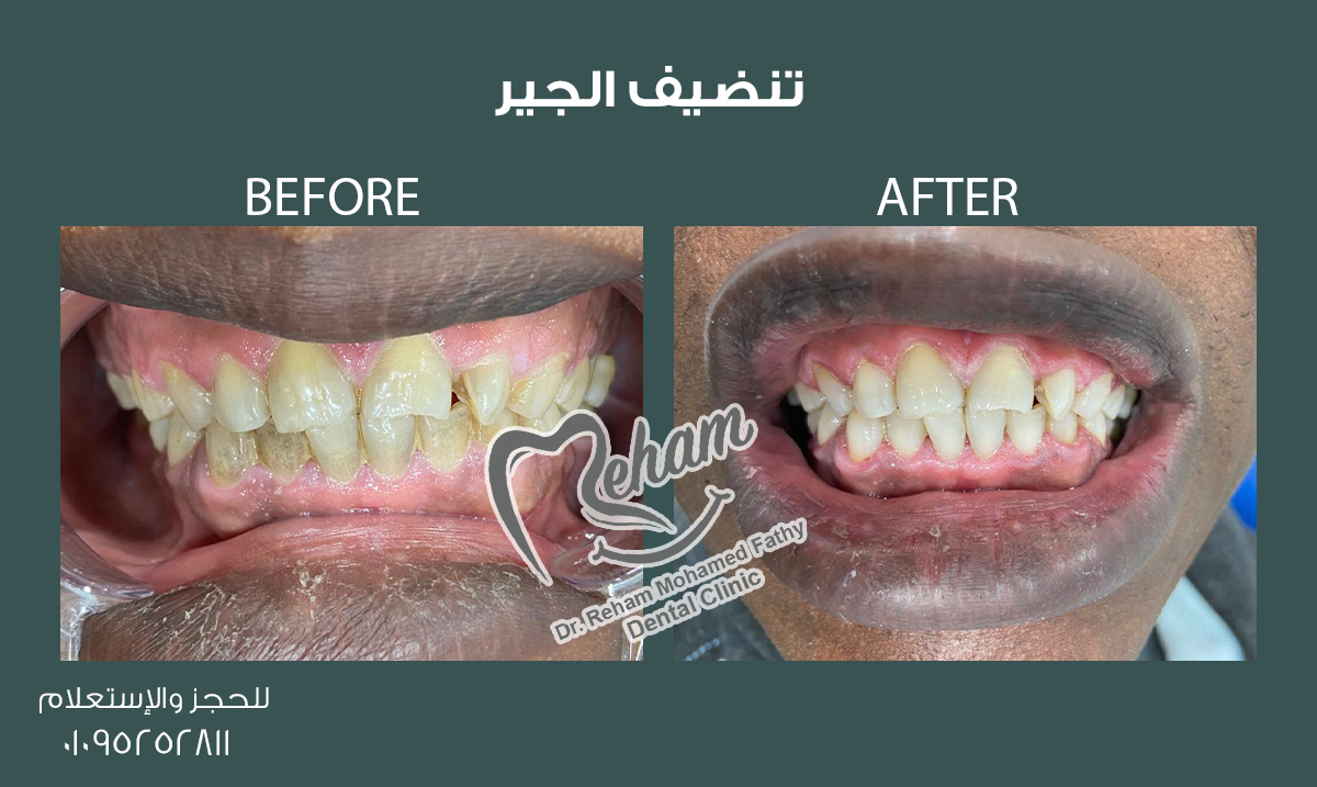 التنضيف العميق في العيادة بيتم بأحدث جهاز موجات فوق صوتية، بيكسر الرواسب الجيرية والبلاك بلطف من تحت اللثة وعلى السطح الخارجي للسن من غير ما تحس بأي ألم، وبعدها بيعملوا تلميع مميز بفرشاة ومعجون طبي مخصوص بيرجع للمينا نعومتها ويعطي أسنانك لمعة طبيعية. طول الجلسة هتاخد نصائح عملية من الفريق عن اختيار الفرشاة والمعجون المناسبين لحالتك وازاي تستخدم خيط الأسنان صح في البيت علشان تحافظ على نظافة فمك.
