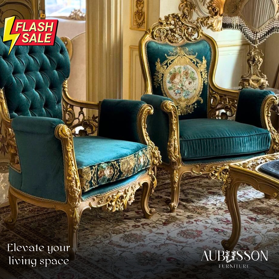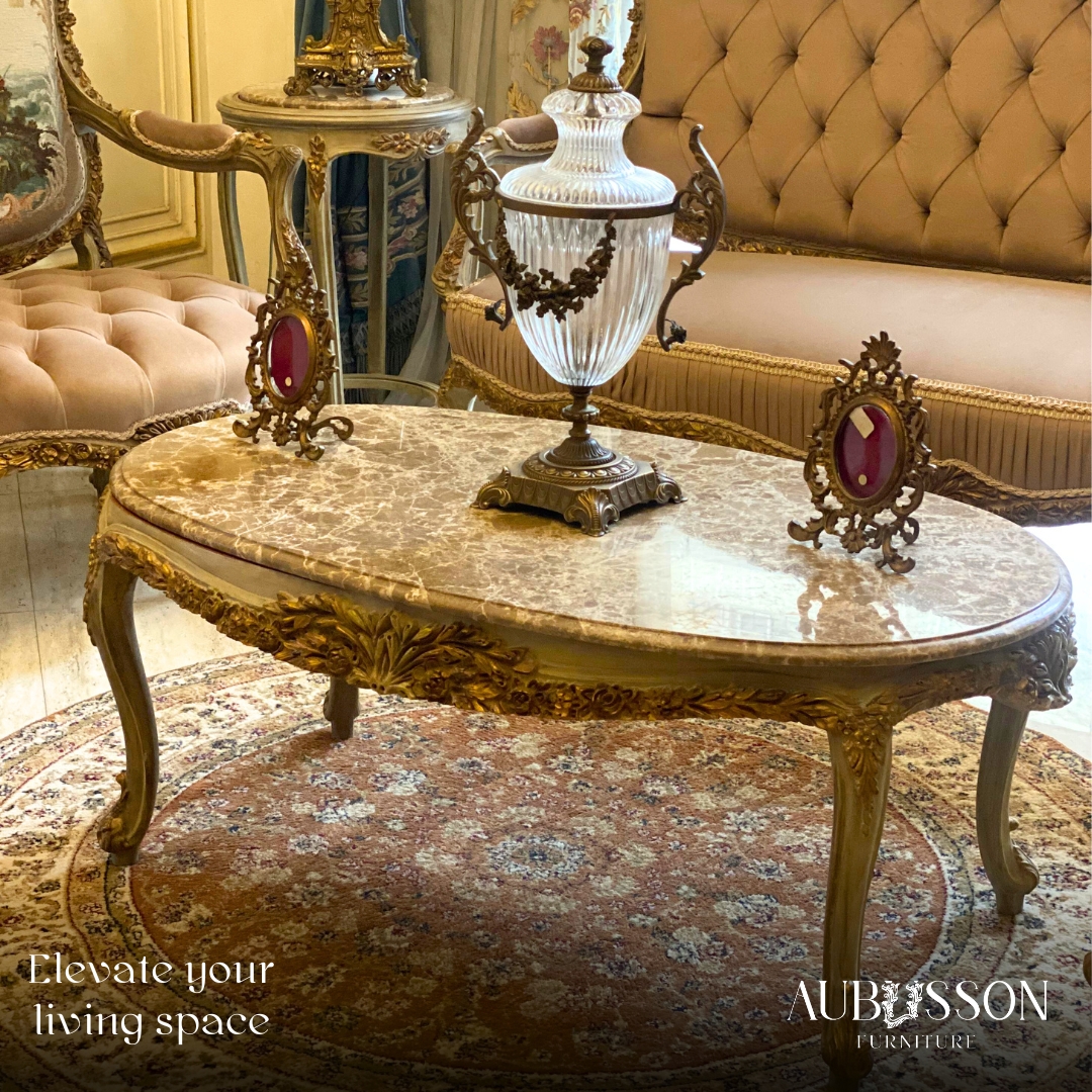 تصميمات Aubusson Furniture كلها متأثرة بالأسلوب الفرنسي الكلاسيكي، واللي بيتميّز بالتفاصيل الراقية، الحفر اليدوي، والألوان المطفية الهادية. كل قطعة بتحس إنها خارجة من قصر، مش من معرض. الخشب متقن التشكيل، والدهانات بألوان ناعمة زي العاجي، الذهبي الهادي، أو الأزرق الباستيل، وده بيخلي الأثاث يضيف هيبة وأناقة لأي مكان يتحط فيه.