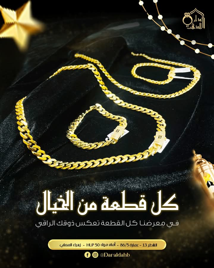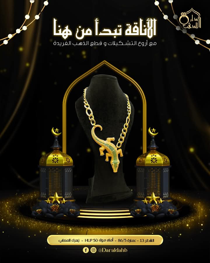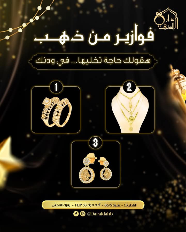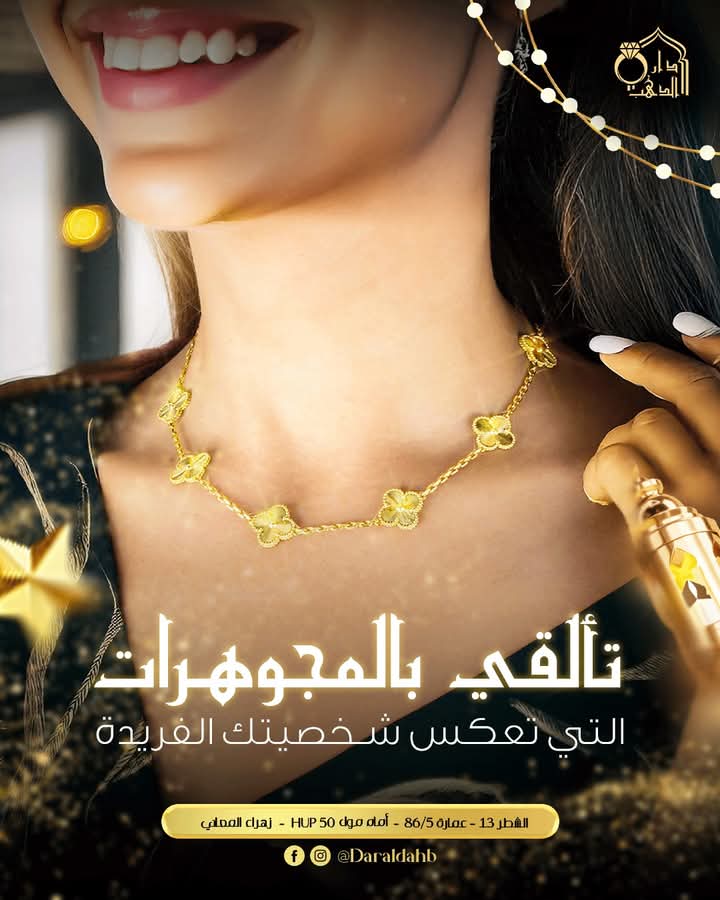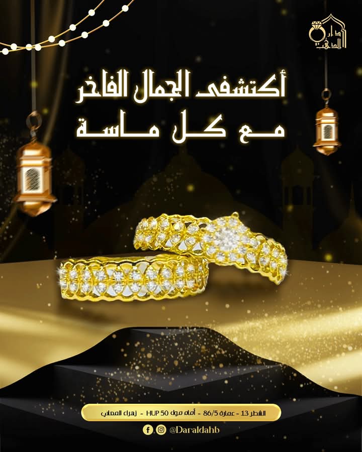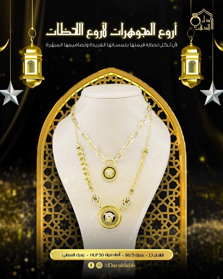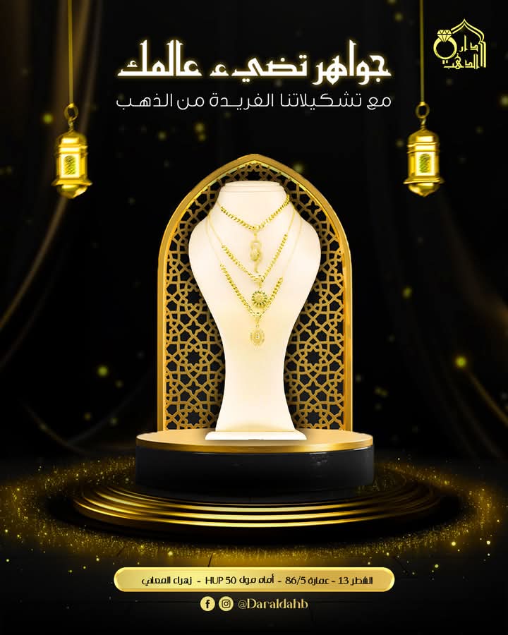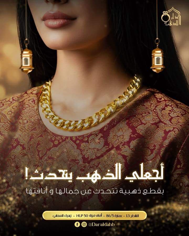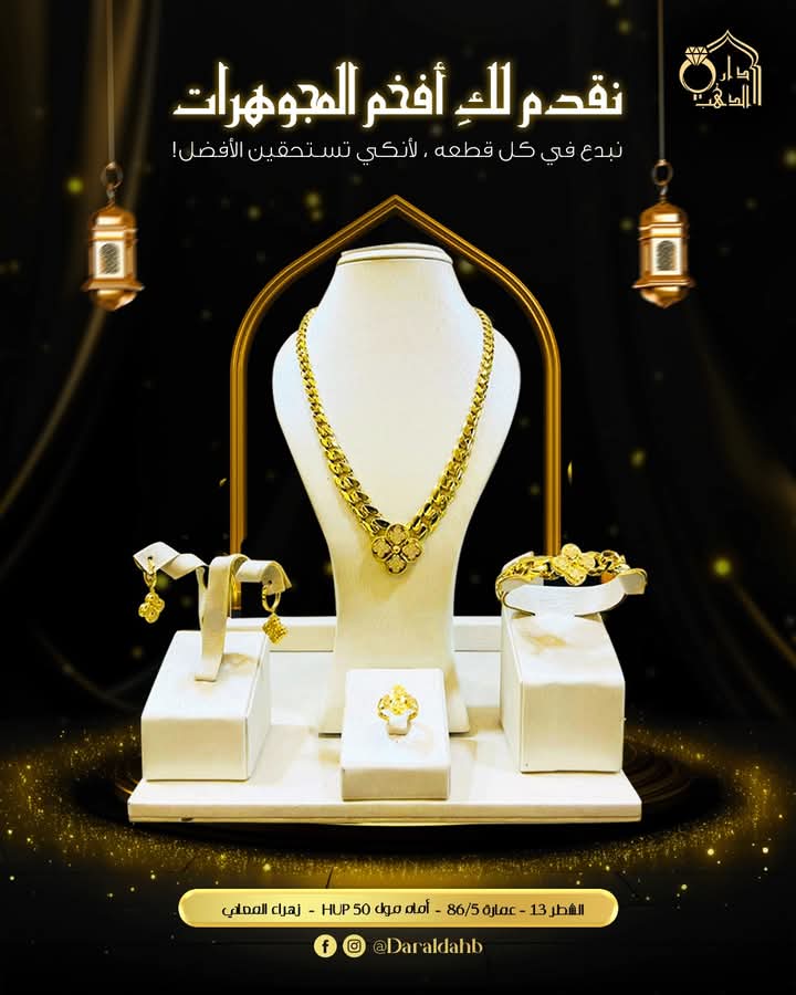 لو ناوي تشتري دهب يكمّل مناسبتك أو يكون ذكرى مميزة، يبقى مجوهرات دار الدهب من الأماكن اللي تستاهل تروح تشوفها بنفسك. شوف التشكيلة، وخد وقتك، واختار القطعة اللي تعبر عنك وتعيش معاك.
