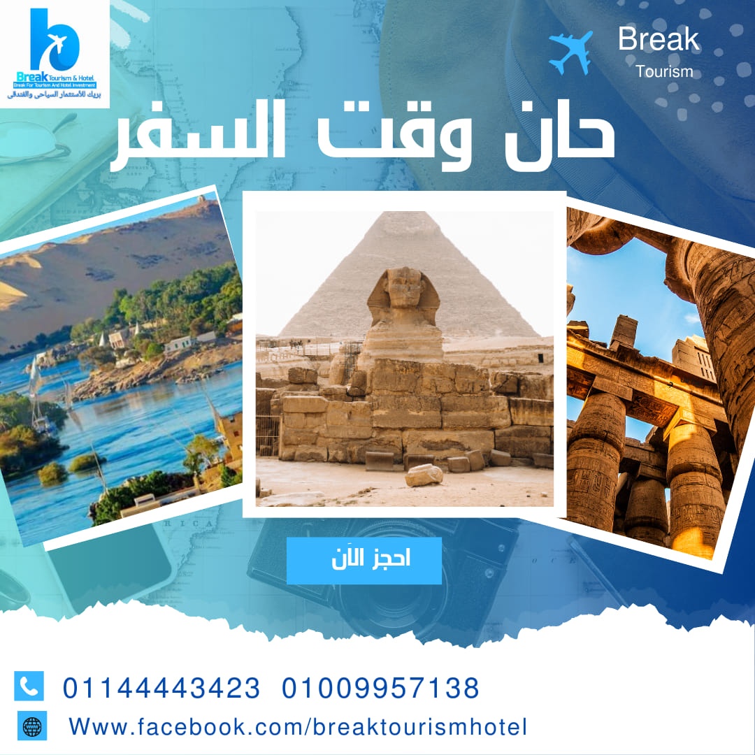شركة Break Tourism بتقدم لك فرصتك للـ“Break” الحقيقية من دوشة الحياة اليومية، وتاخدك في جولات مصممة مخصوص عشان تريح بالك وترجع بنشاط وحيوية. من أول لحظة تحجز لآخر ثانية قبل ما ترجع بيتك، هتلاقي كل حاجة مترتبة وعلى أصولها — جولات أثرية، فسحات شاطئية، مغامرات صحراوية، ورحلات دينية — بضيافة مصرية دافية وخدمة عملاء 24/7.