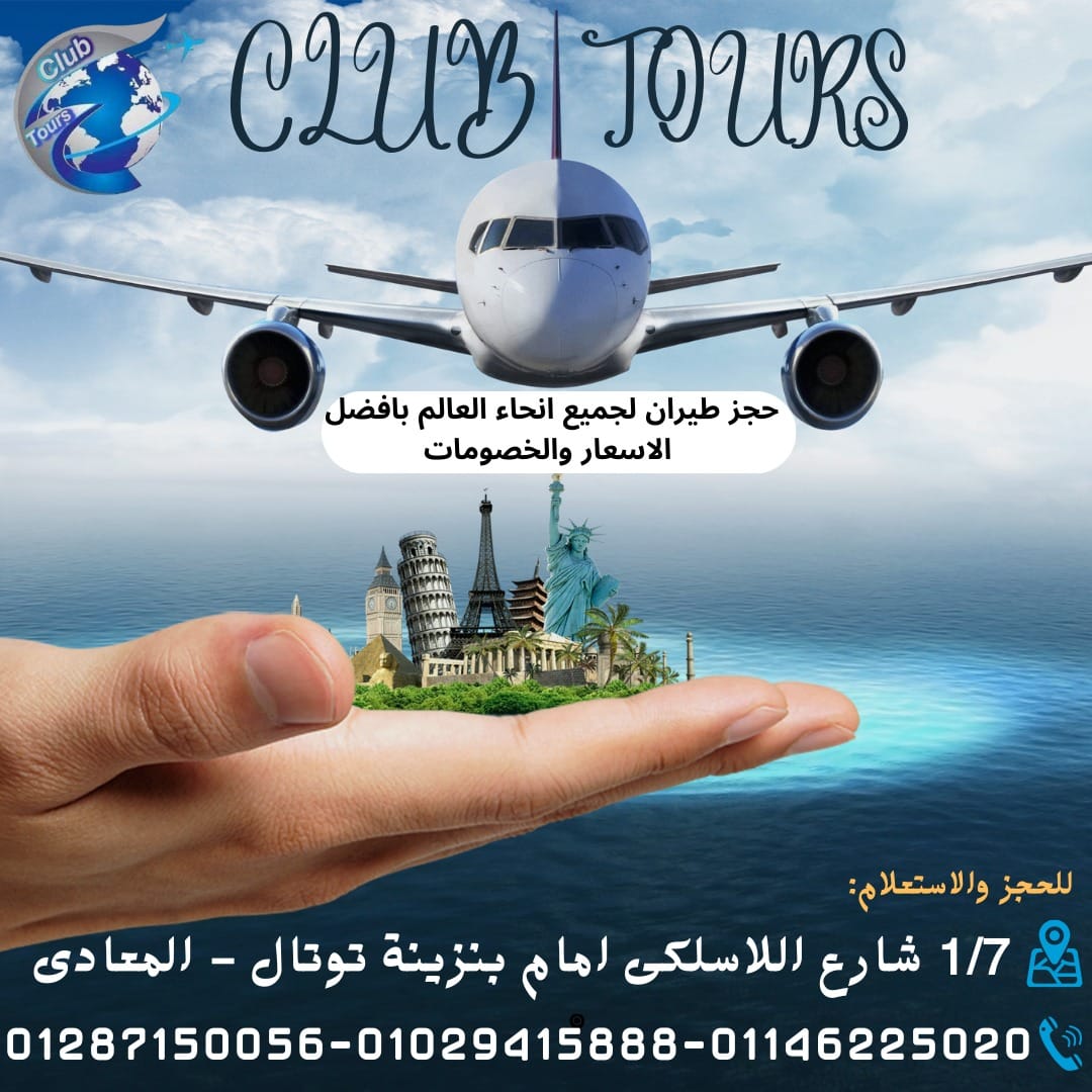 شركة Club Tours هتخليك تعيش تجربة سفر مختلفة تماماً… رحلة منظمة ع الآخر، وضيافة مصرية أصيلة، وخدمة ٢٤/٧ على طول الطريق. لو نفسك تزور أهرامات الجيزة وأسرار الفراعنة، تستجم على شواطئ البحر الأحمر النقية، تخوض مغامرة صحراوية بين الكثبان الرملية، أو حتى تنظم عمرة مرتّبة ومريحة، Club Tours متوفّرة ترسم لك باقة تناسب مزاجك وميزانيتك.