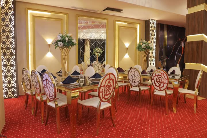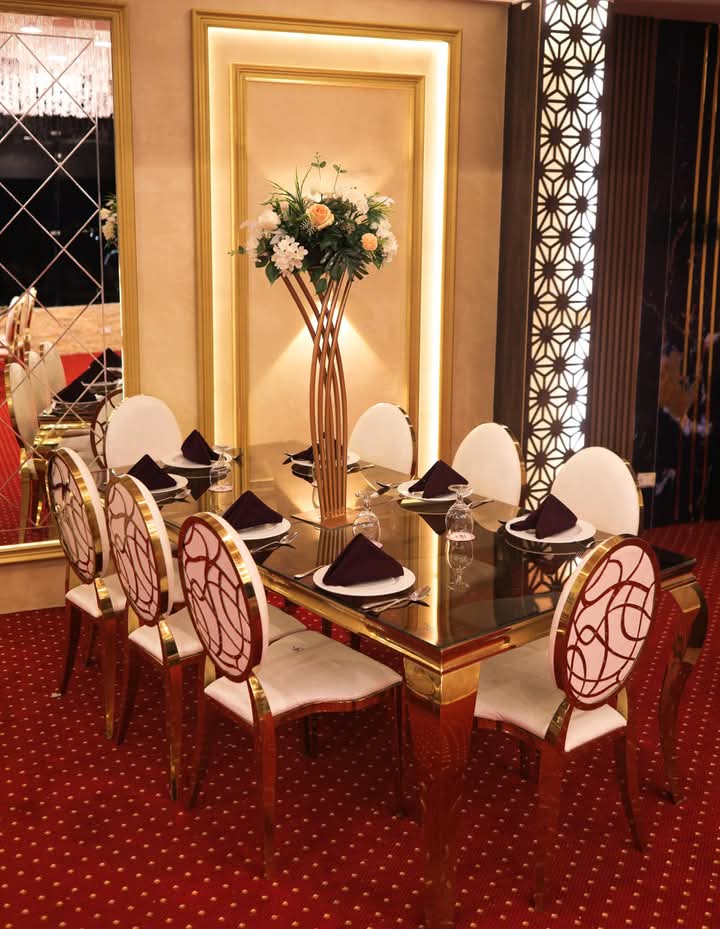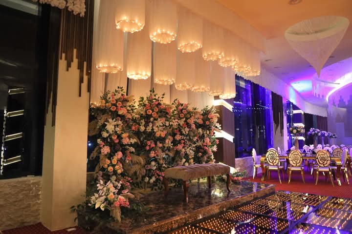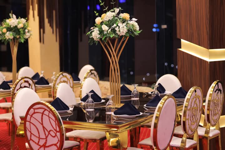 تصميم القاعة فيه لمسة مودرن راقية، مع ألوان هادية وإضاءة متوزعة صح بتبرز جمال المكان وبتخلي كل الصور تطلع مثالية.