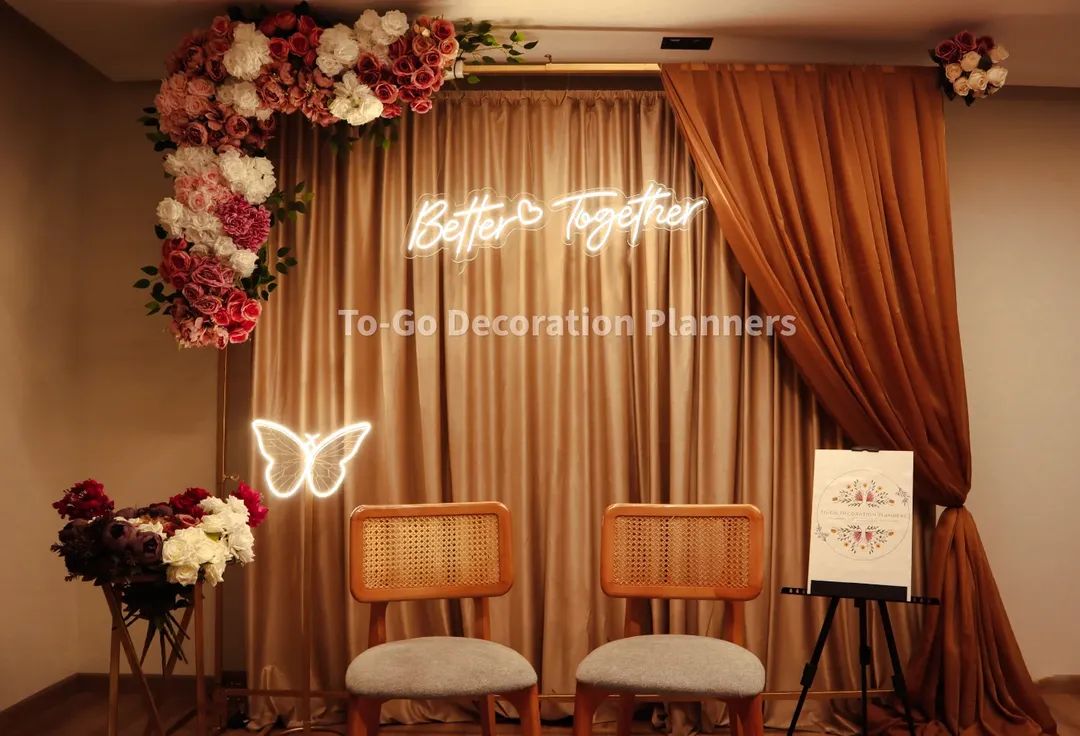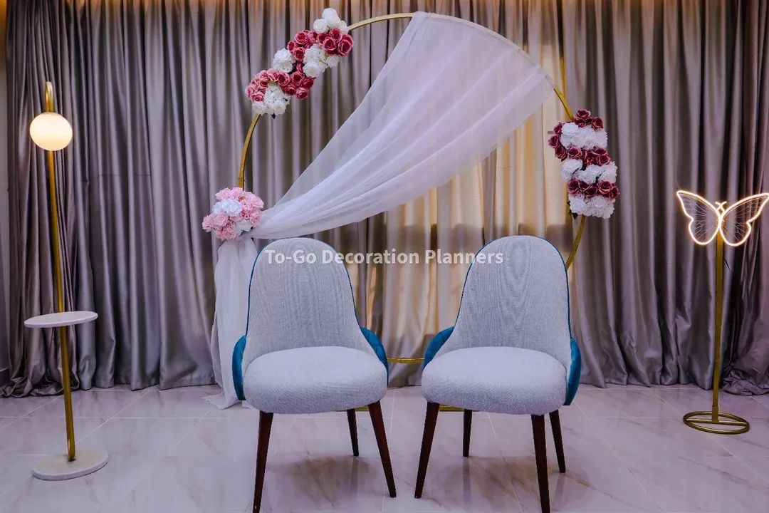 To Go Decoration Planners مش بيشتغلوا على الشكل وبس، لكن بيهتموا جدًا بجو الفرح كله. يعني مش بس كوشة وخلفية، لكن كمان الطاولات، الممر، المدخل، ركن التصوير، وحتى تفاصيل بسيطة زي الفازات والشموع والورد. وده بيخلي الديكور كله متكامل ومش متفكك.