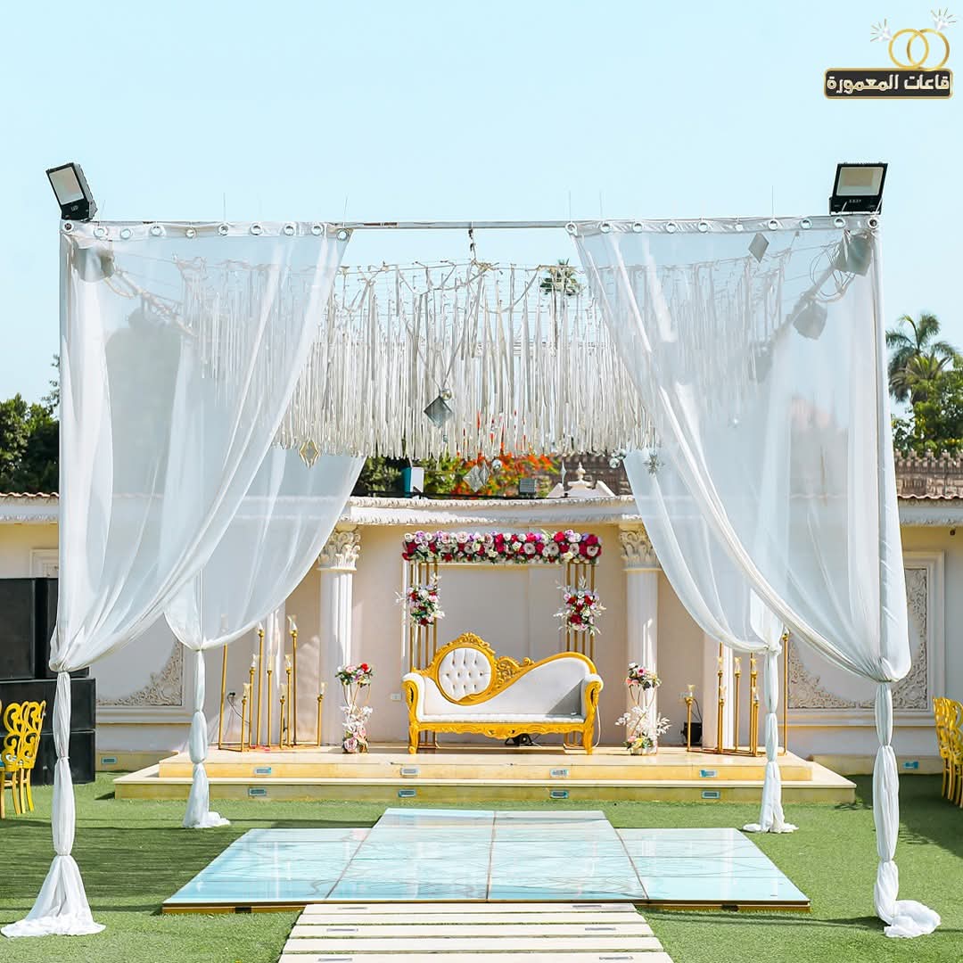 المكان مصمم بعناية عشان يناسب مختلف أنواع الحفلات، سواء حفلات زفاف كبيرة بتجمع العائلة والأصدقاء أو مناسبات خاصة بأجواء هادية ومميزة. تصميم القاعة بيجمع بين المساحات الخضراء المحيطة والإعدادات الأنيقة اللي بتضيف سحر خاص لكل مناسبة.