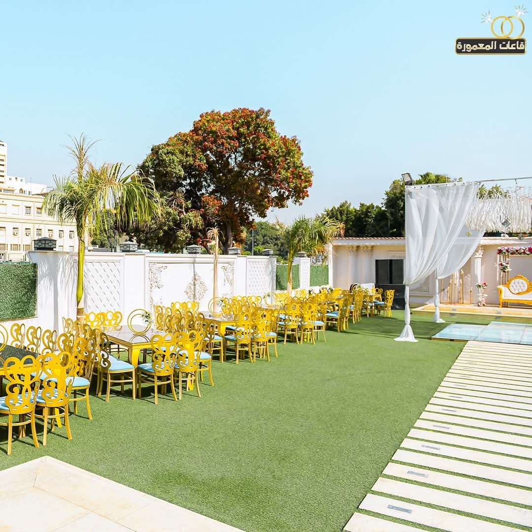 المساحات الواسعة والتصميم الفريد للقاعة بيمنحك مرونة كبيرة في اختيار طريقة ترتيب الحفل اللي تناسب رؤيتك، سواء كنت بتفضل ديكور بسيط وهادئ أو إعداد فاخر ومميز. ده غير إن الأجواء الطبيعية المحيطة بالمكان بتضيف لمسة خاصة للصور والذكريات.