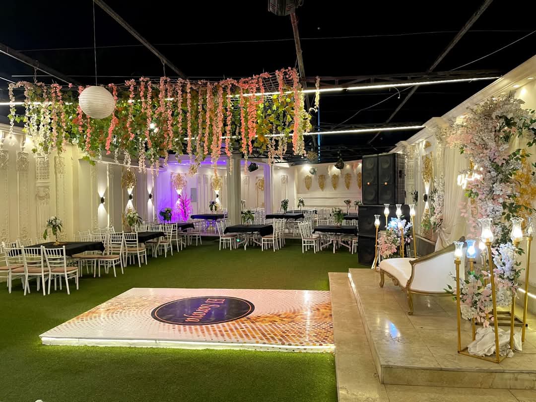 المكان مجهز بكل ما تحتاجه لإقامة حدث ناجح. تصميم القاعة الداخلي بيجمع بين الفخامة والراحة، مع تفاصيل دقيقة تضيف لمسة من الرقي لأي احتفال. المساحة الواسعة للقاعة بتدي مرونة كبيرة في ترتيب الطاولات وتنظيم الحفل بالطريقة اللي تناسب رؤيتك.