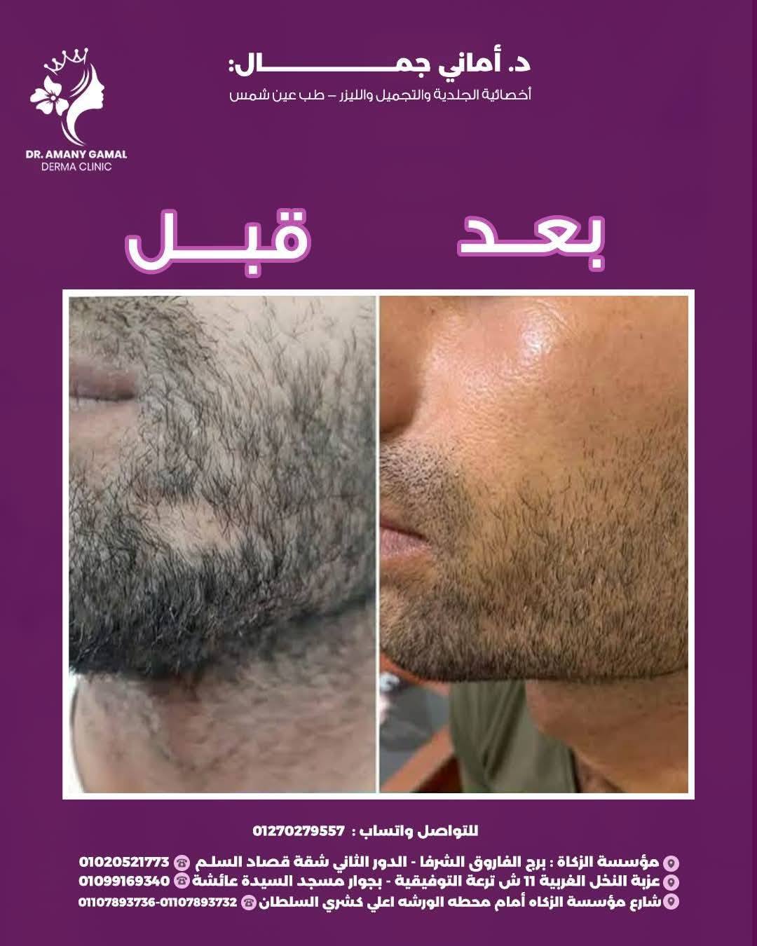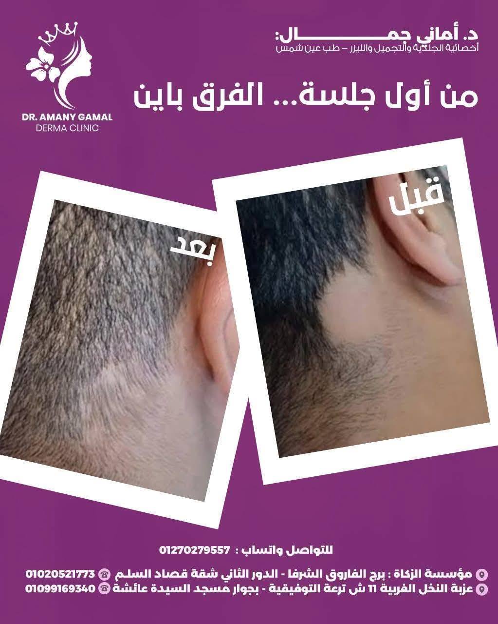 اللي بيميز دكتورة أماني جمال كمان إنها بتتعامل مع كل حالة باهتمام كبير وبتحب تشرح كل خطوة قبل ما تبدأها علشان المريض يكون مطمن وفاهم. كمان بتهتم بمتابعة الحالات بعد الجلسات وبتقدم نصايح بسيطة للعناية اليومية بالبشرة واختيار المنتجات المناسبة لكل نوع بشرة علشان النتايج تفضل مستمرة بعد الفرح.