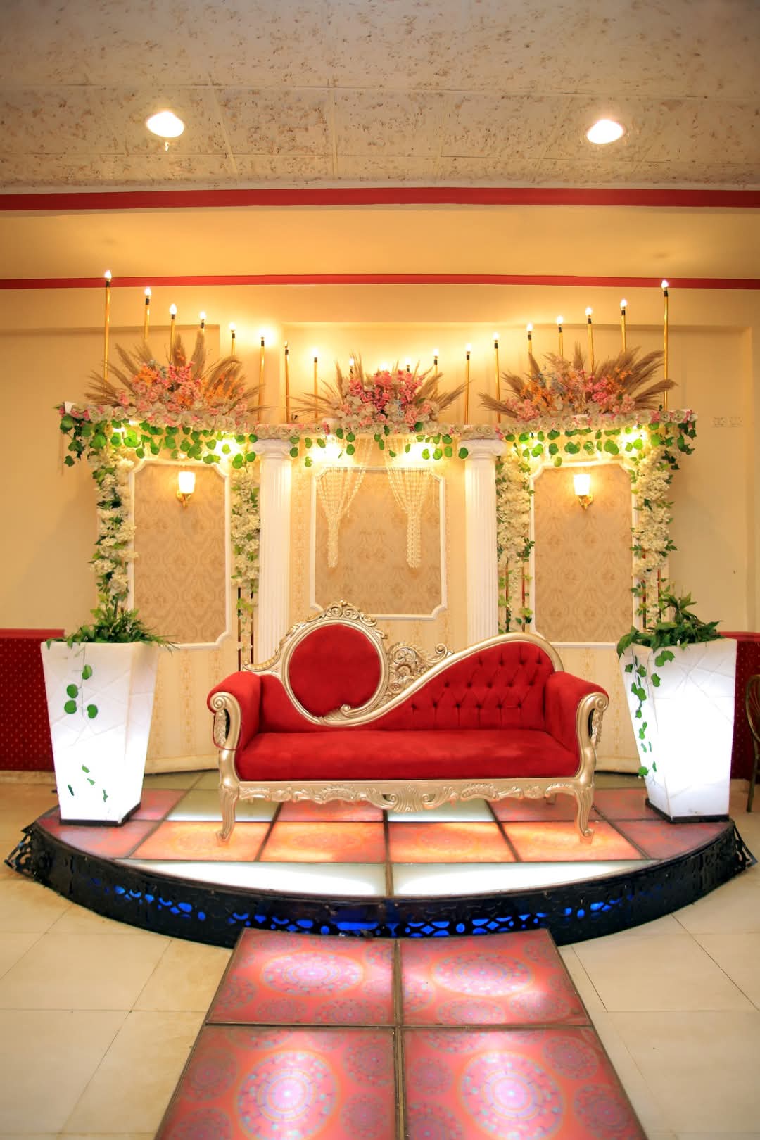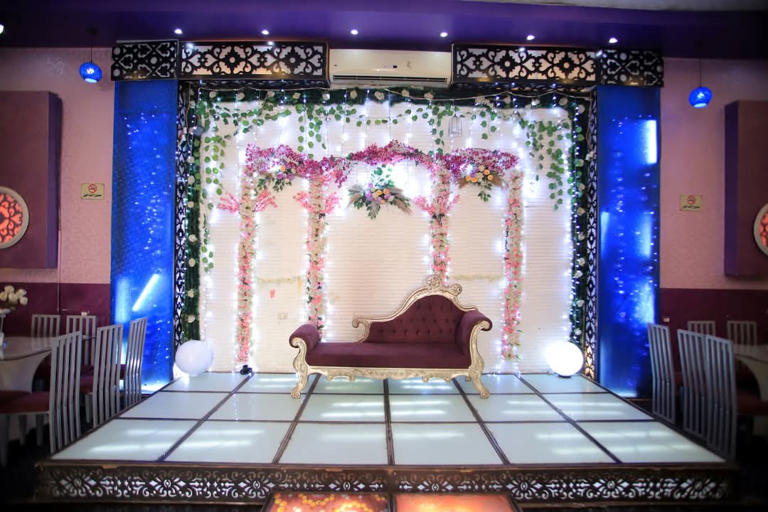 القاعة مش كبيرة زيادة ولا صغيرة، وده بيخلي الجو فيها دافي ومريح، خصوصًا لو بتخطط لمناسبة عائلية أو حفلة خطوبة أو كتب كتاب.