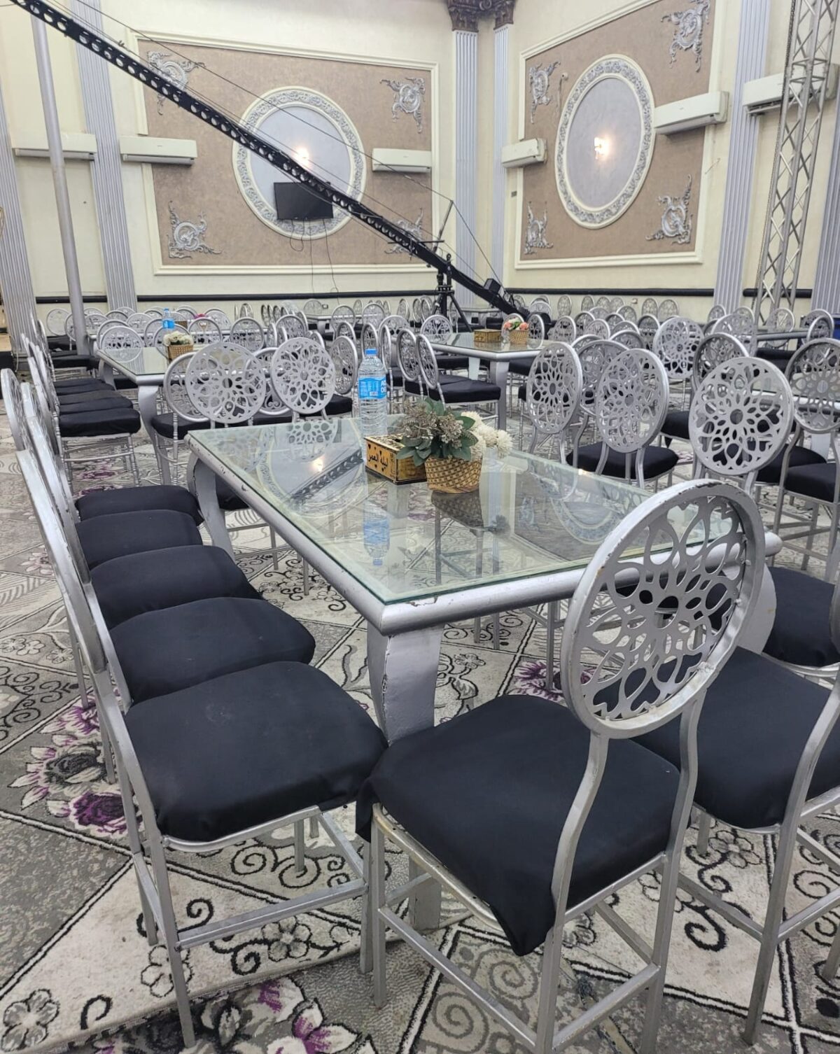 الشكل العام للقاعة بسيط وشيك، وبيسمح لك تضيف لمسات من ذوقك سواء في لون المفارش أو ترتيب الورد أو شكل الإضاءة.