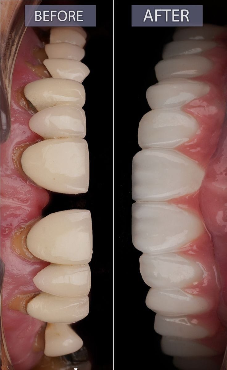 العيادة كمان بتركّز على علاج اللثة وتنضيفها من الالتهابات والتصبغات، لأن اللثة السليمة بتكمل جمال الابتسامة. ولو الحالة محتاجة تقويم، سواء المعدني أو الشفاف، العيادة بتوفّر أحدث الأنواع اللي بتكون مريحة وسهلة في الاستخدام ونتيجتها دقيقة جدًا.