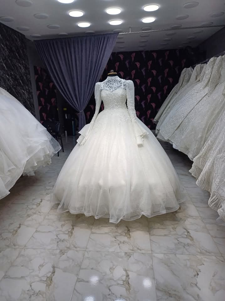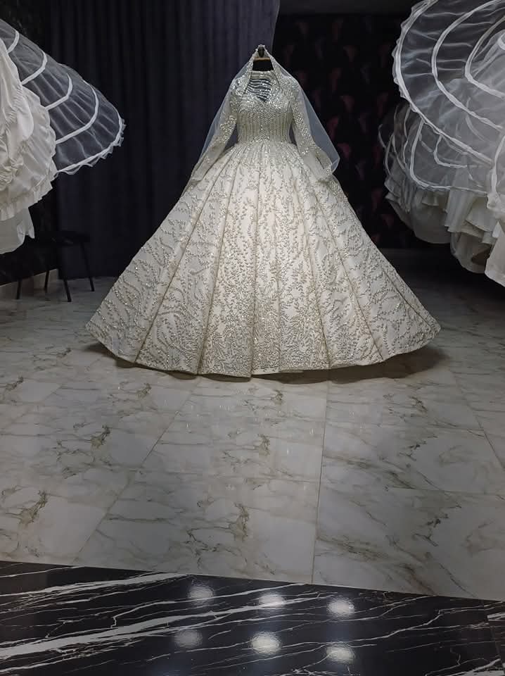 الاتيليه بيضم تشكيلة متنوعة من فساتين الزفاف اللي بتناسب كل الأذواق، سواء كنتي بتمّي لستايل الفساتين البسيطة والناعمة أو بتحبي الشغل الكتير والتطريز اللي يلمع. الخامات المستخدمة كلها مستوردة وجودتها واضحة من أول لمسة، من أول التول والدانتيل لحد الساتان والشيفون، وكل فستان معمول بحرفية علشان يظهر جمالك الطبيعي.