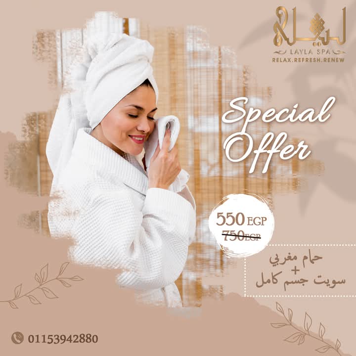لو حسيتي إنك محتاجة تفصلي من دوشة اليوم، وتدي لنفسك شوية وقت تهتمي فيه بجمالك وراحتك، يبقى لازم تعملي زيارة لـ Layla Spa. المكان معمول مخصوص علشانك، علشان يهتم بيكي من أول شعرك لبشرتك لجسمك، وكل ده في أجواء راقية وهادية تخليكي تخرجي منه وأنتي في مود تاني تمامًا.