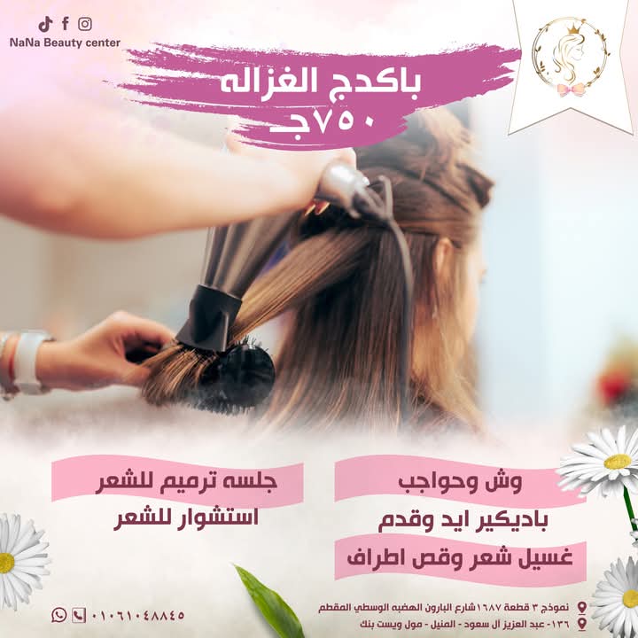 سواء محتاجة علاج لشعرك، جلسة ترطيب، أو لون جديد يغير مودك، كل ده هتلاقيه في Nana Beauty Spa: