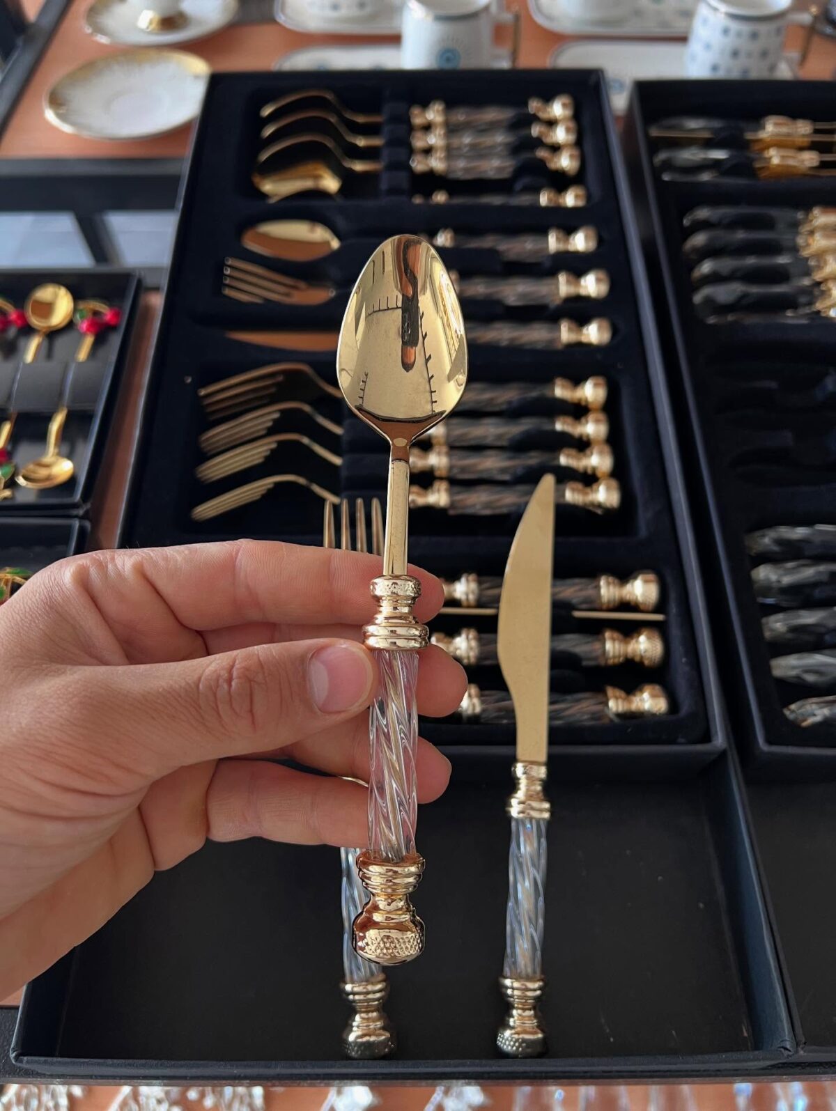 أما قسم السفرة والتقديم، فهو مميز جدًا في Table Corner. أطقم أطباق بورسلين وزجاج تركي أو أوروبي بتصميمات شيك تناسب المودرن والكلاسيك، وكاسات عصير، فناجين شاي وقهوة بتفاصيل راقية. فيه كمان صواني تقديم وأباريق وأدوات ضيافة تضيف لمسة فخامة لأي مناسبة أو جلسة عائلية.