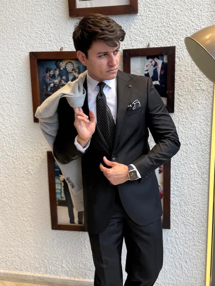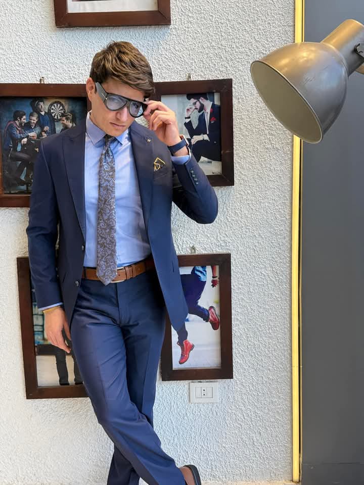 الألوان كمان ليها دور كبير. عندهم درجات الأسود والكحلي اللي مفيش غني عنهم لأي مناسبة رسمية، والرمادي بدرجاته المختلفة اللي يناسب الشغل والمناسبات الاجتماعية، بجانب ألوان تانية زي الأزرق الفاتح والبيج اللي بيخلوك تطلع بشكل خفيف ومميز خصوصًا في المناسبات الصيفية.
