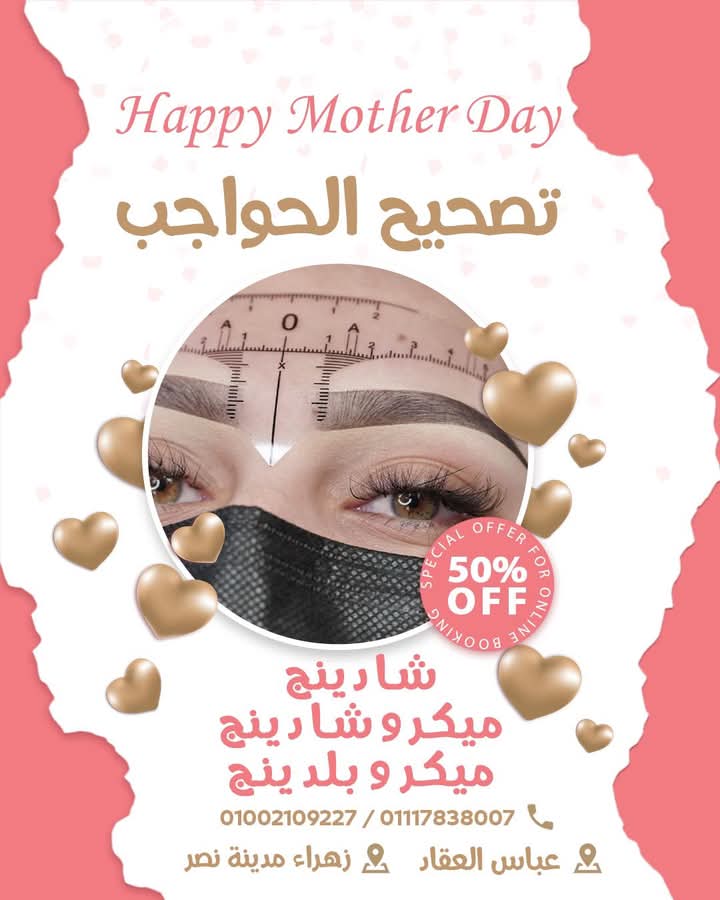 المكياج بيتعمل بأسلوب بسيط، يبرز ملامح وشك من غير ما يغيرها. كل حاجة بتتراجع معاكي قبل ما تبدأ، والمنتجات المستخدمة خفيفة وثابتة. سواء ميكب خفيف أو لوك سواريه، النتيجة دايمًا شكل مرتب وواضح.