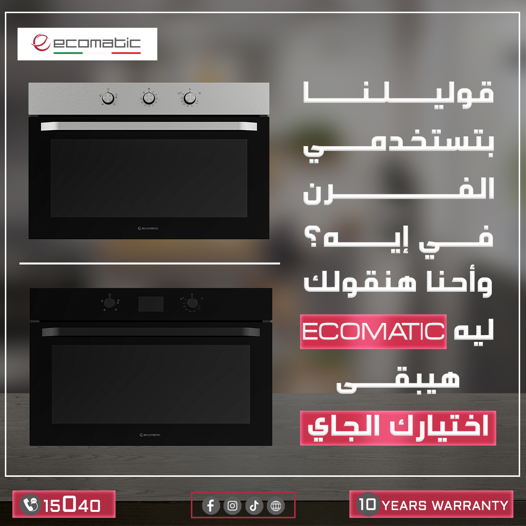 في منتجات Ecomatic هتلاقي تشكيلة واسعة زي البوتاجازات، الشفاطات، غسالات الأطباق، سخانات الكهرباء، السخانات الغاز، الميكروويف، الشاشات، والديب فريزر. الأجهزة دي مصممة علشان تشتغل بكفاءة وفي نفس الوقت تستهلك كهرباء أقل، وده مناسب جدًا للناس اللي بتفكر في الفاتورة.