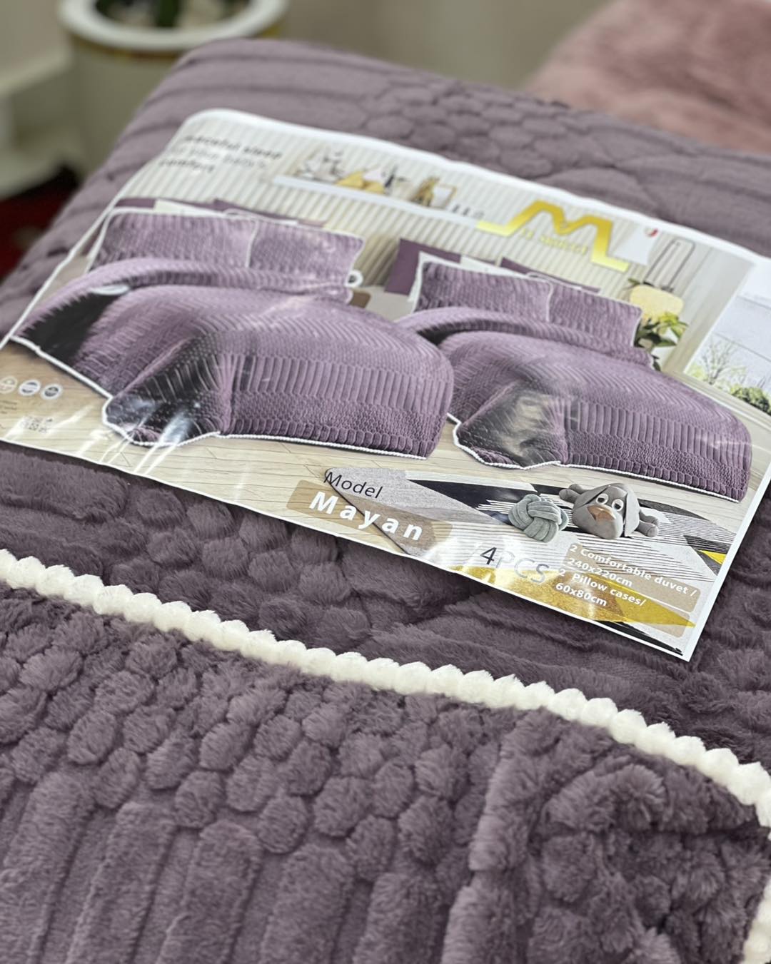 غطاء اللحاف يفتح ويقفِل بزرائر مخفية مبطنة قماشيًا لحماية الجلد، مع حشو فايبر سيليكون موزع في غرف خياطة دقيقة تمنع تكتل الحشو وتوزع الدفء بشكل متوازن دون ثقل.