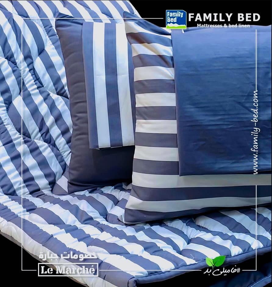 بجانب المراتب، "Family Bed" بيقدم أطقم ملايات من قطن مصري طويل التيلة بخيوط 400 لضمان نعومة وتهوية ممتازة، وجيوب عميقة 38 سم وشريط مطاط داخلي لثبات الملاية.