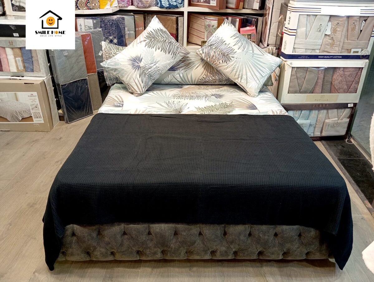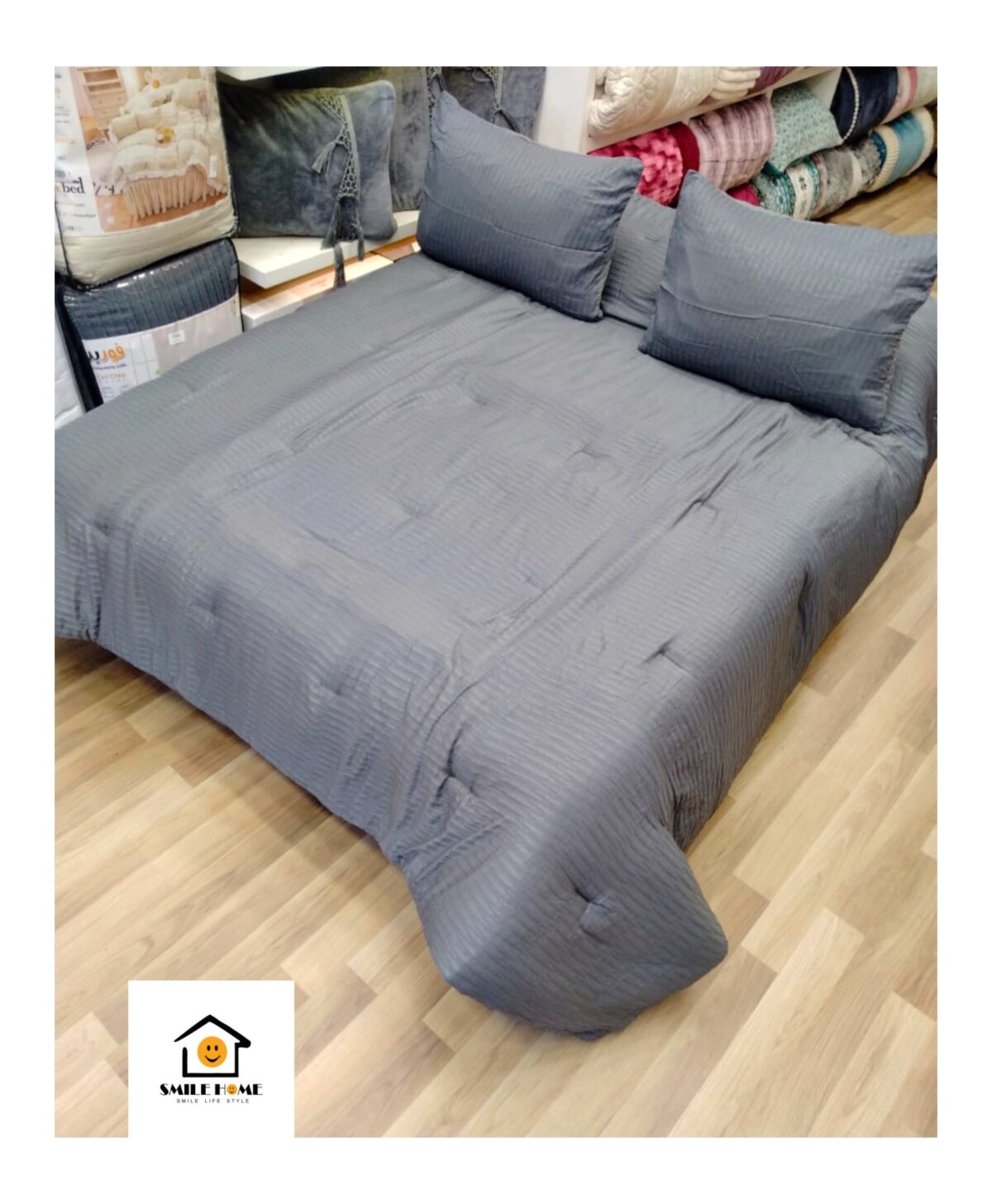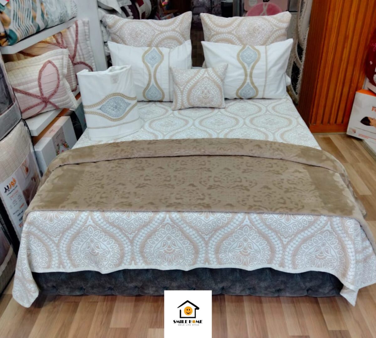 غطاء اللحاف في "Smile Home" بيقفِل بزرائر مخفية خشبية أو بلاستيكية مبطنة قماشيًا لحماية الجلد وإضفاء لمسة فخامة، والحشو فايبر سيليكون موزع بخياطة غرف تمنع التكتل وتضمن دفءً متساويًا دون ثقل مبالغ فيه.
