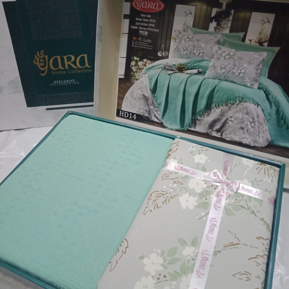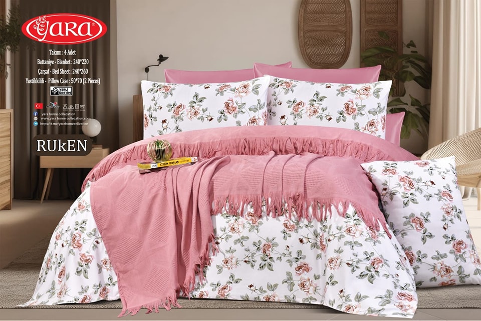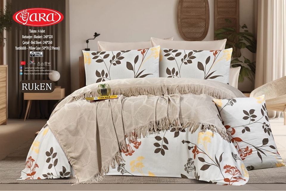 للعرايس باقة “Yara Bridal” بتضم أربع أطقم ملايات بألوان ودرجات متناسقة، لحاف شتوي وجهين، بطانية صيفي، ستارتين مطابقتين، وطقم بشاكير ومناشف قطنية فاخرة. الباقة تمنح توفير يصل لـ20% مقارنة بشراء القطع فرديًا.