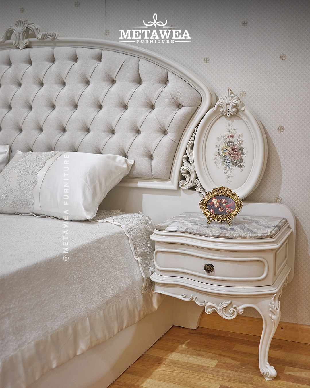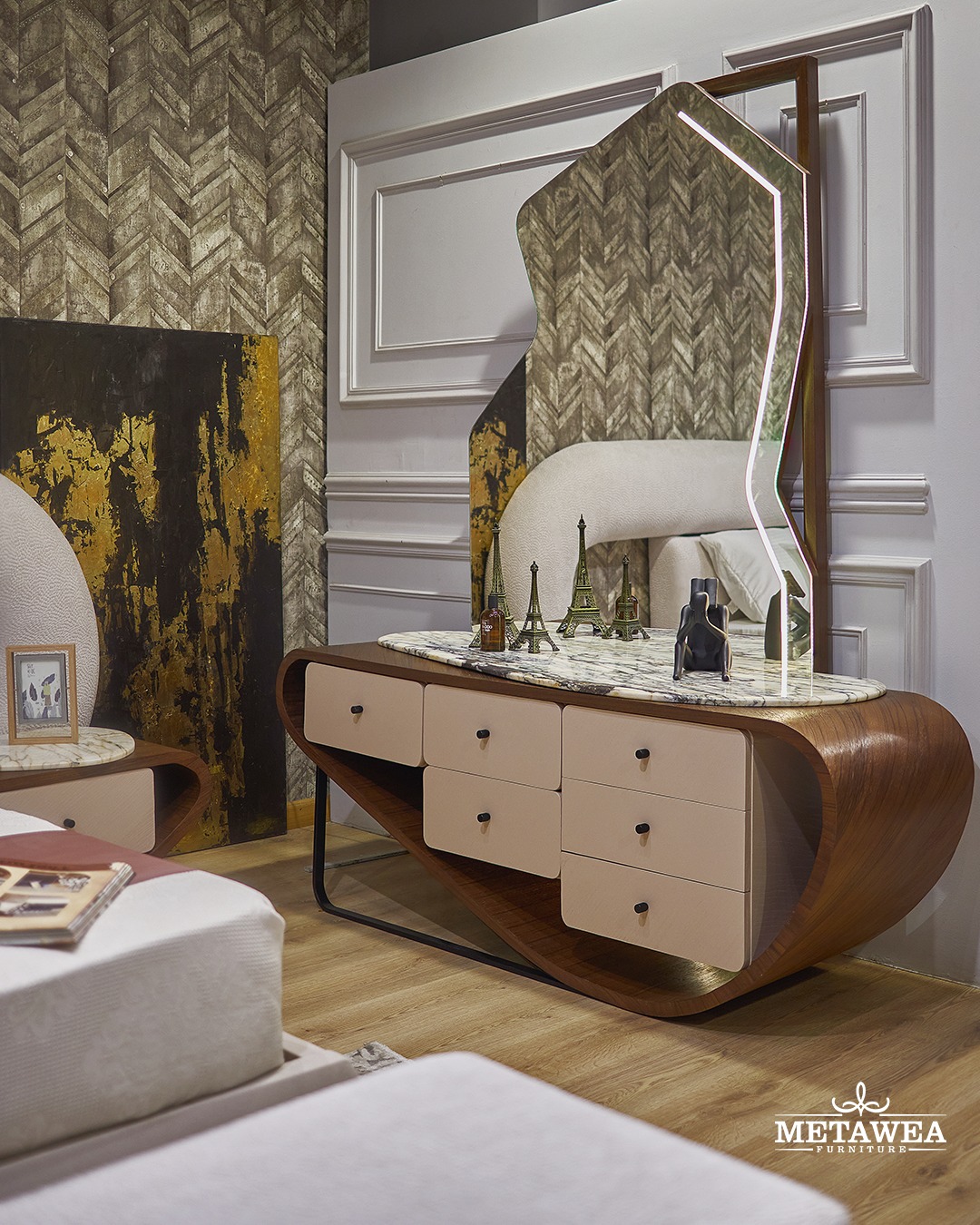 – كومودينو وتسريحة بنظام Soft-Close هادي من غير دوشة، ومساحاتهم السطحية مناسبة للأباجورة ومستحضرات التجميل.