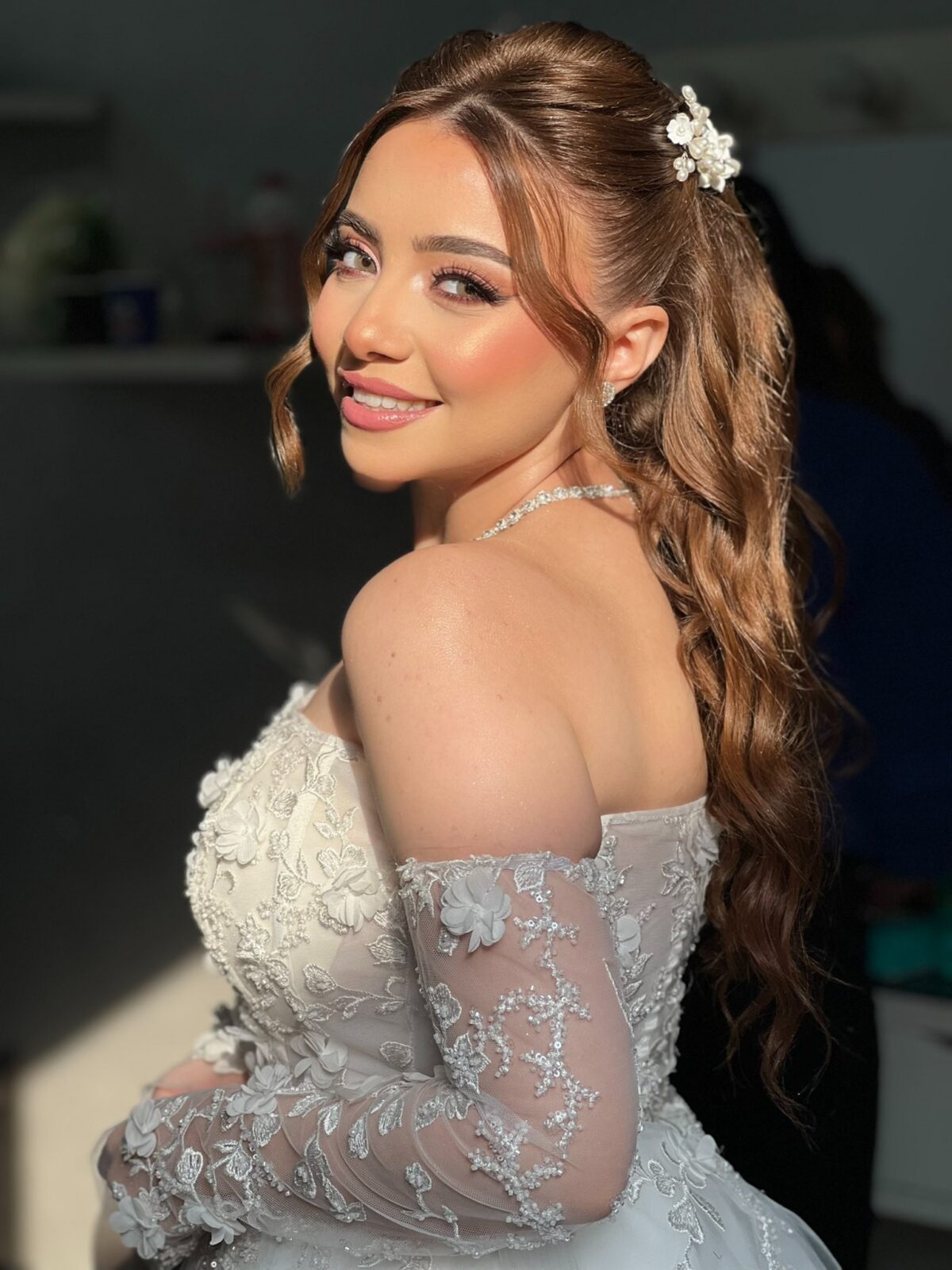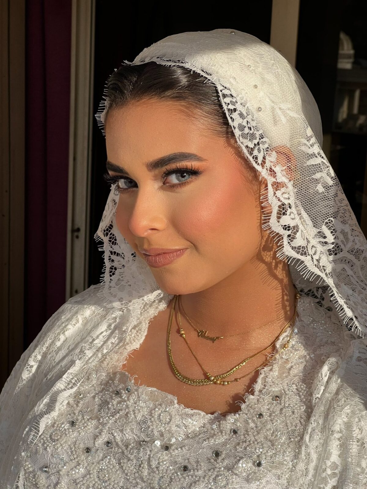 في مكياج العرايس، آية بتركز على إنها تبرز ملامح العروسة من غير ما تغير شكلها الطبيعي. بتختار الألوان اللي تمشي مع لون بشرتها وطبيعة الفستان، وبتشتغل بخطوات مدروسة من أول كريم الأساس لحد أحمر الشفاه. الهدف دايمًا إن العروسة تبقى راضية عن شكلها وتحس إنها مميزة في يومها.