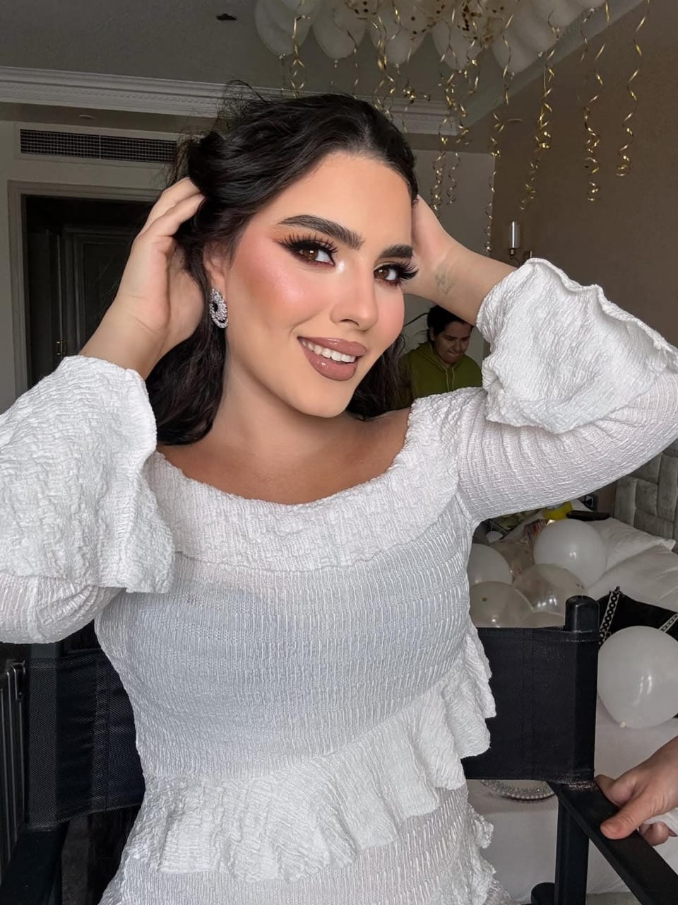 الجلسة معاها بتكون بسيطة ومريحة، بتحب تسمع كل واحدة وتفهم هي عايزة شكل عامل إزاي. مفيش استعجال ولا خطوات متكررة على كل الناس، كل مكياج بيتنفذ بشكل مختلف يناسب شكل الوش والمناسبة.