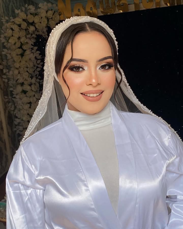 في يوم الفرح، بتشتغل نجوى على راحة العروسة من أول لحظة. بتبدأ باختيار الألوان اللي تليق على لون البشرة، وتنسّق المكياج مع الفستان، والتسريحة، والإكسسوارات. المكياج بيكون ناعم وفيه لمسة جمال هادية، من غير ما يغيّر شكل العروسة أو يخليها مش حاسة إنها على طبيعتها.