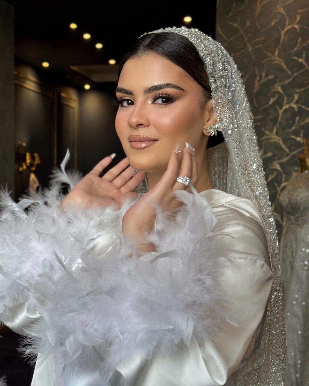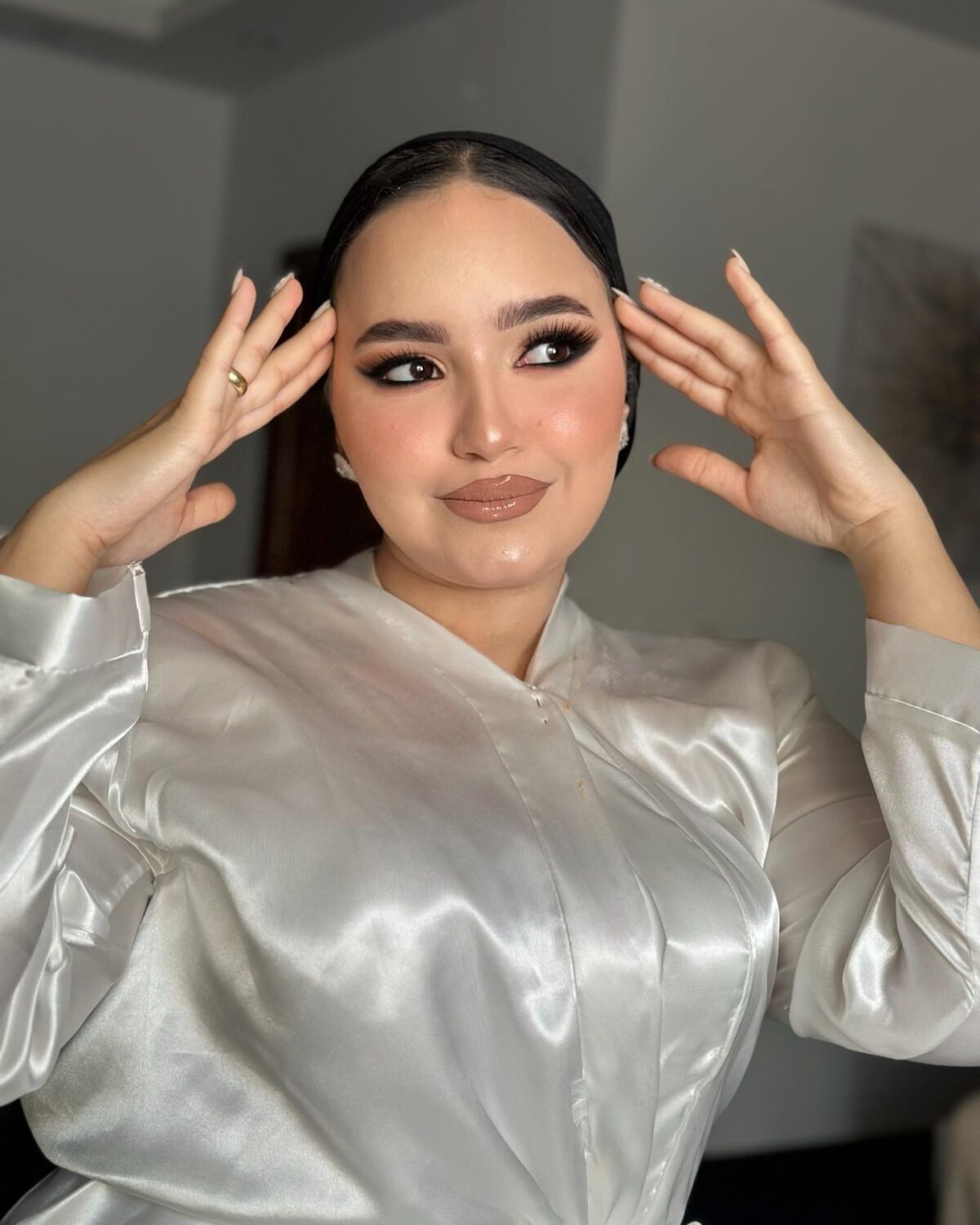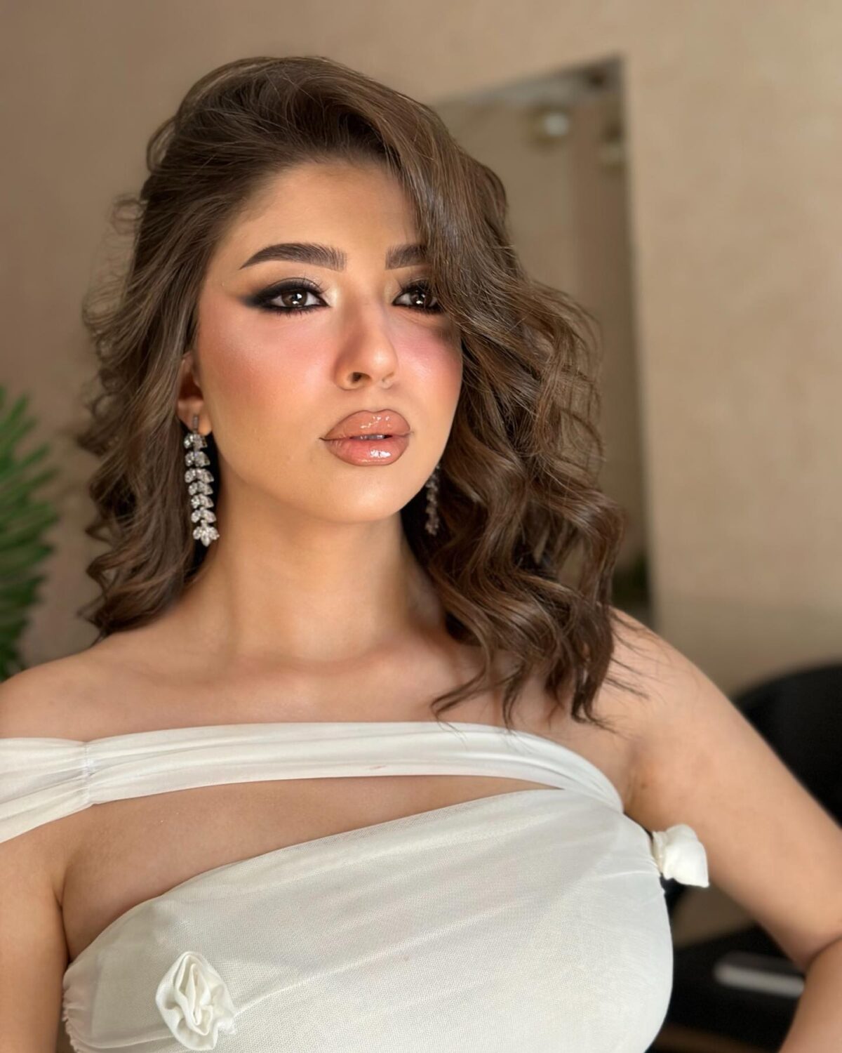 لو العروسة حابة لوك جريء أكتر، علا بتعرف توازن بين الألوان القوية والرقة. ممكن تستخدم سموكي بدرجات رمادية أو نبيتي مع لمعة بسيطة على الجفن، وتختار لون روج يناسب اللوك العام، لكن دايمًا بتخلي الشكل النهائي راقي ومتناسق. أسلوبها في الدمج وتوزيع الإضاءة بيدي نتيجة أنثوية ومشرقة من غير أي مبالغة.