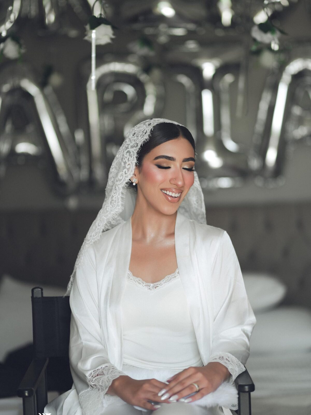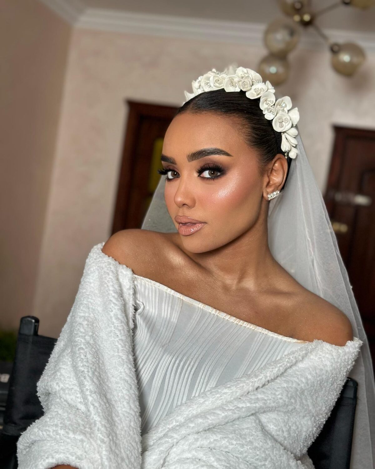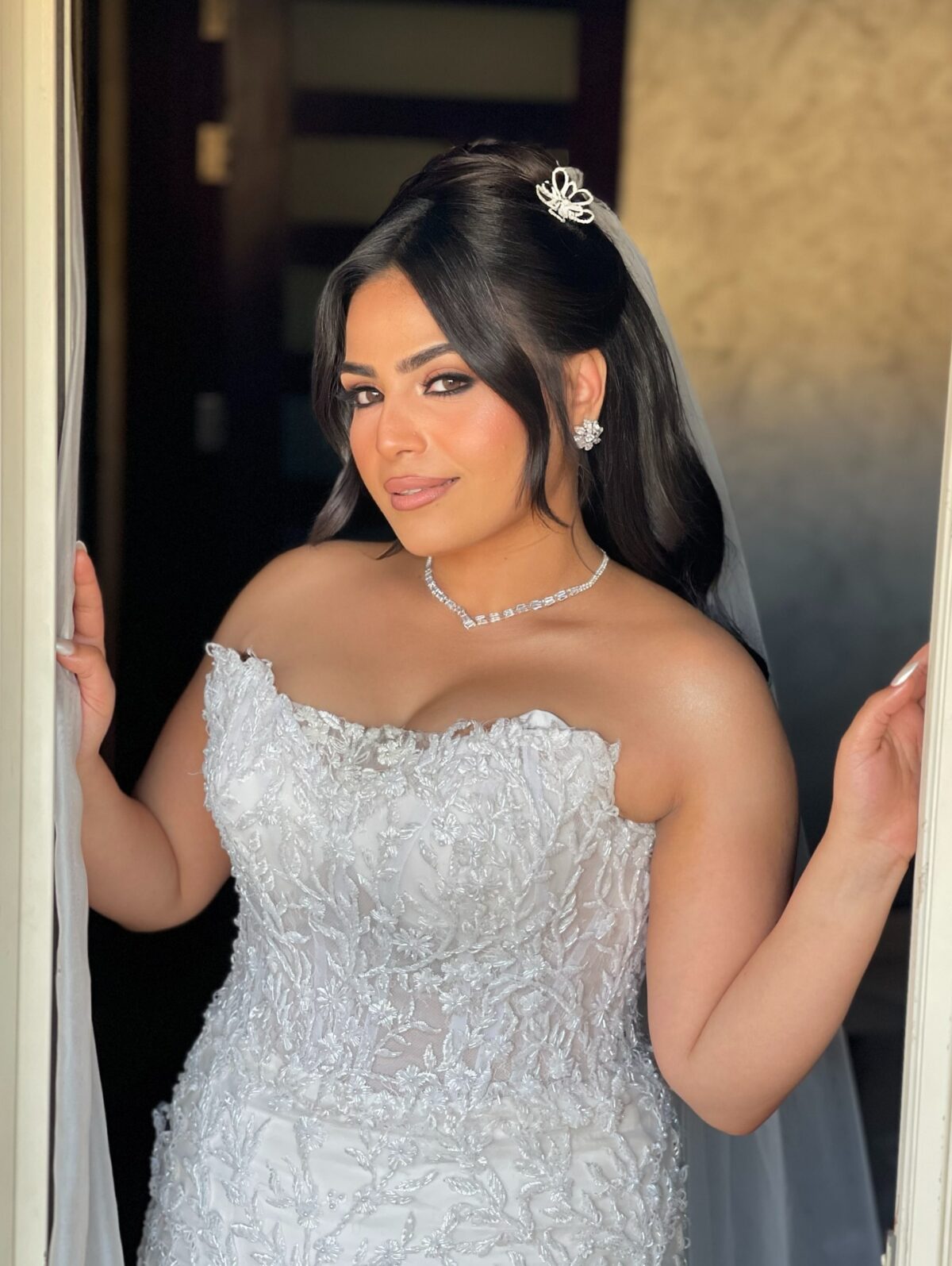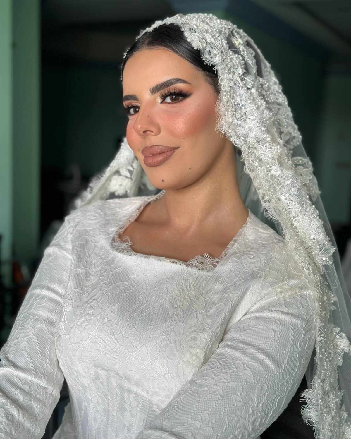 لو العروسة حابة لوك جريء أكتر، علا بتعرف توازن بين الألوان القوية والرقة. ممكن تستخدم سموكي بدرجات رمادية أو نبيتي مع لمعة بسيطة على الجفن، وتختار لون روج يناسب اللوك العام، لكن دايمًا بتخلي الشكل النهائي راقي ومتناسق. أسلوبها في الدمج وتوزيع الإضاءة بيدي نتيجة أنثوية ومشرقة من غير أي مبالغة.