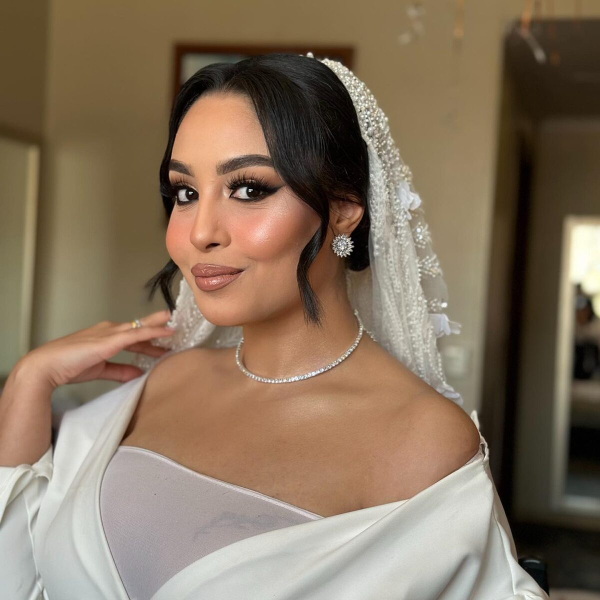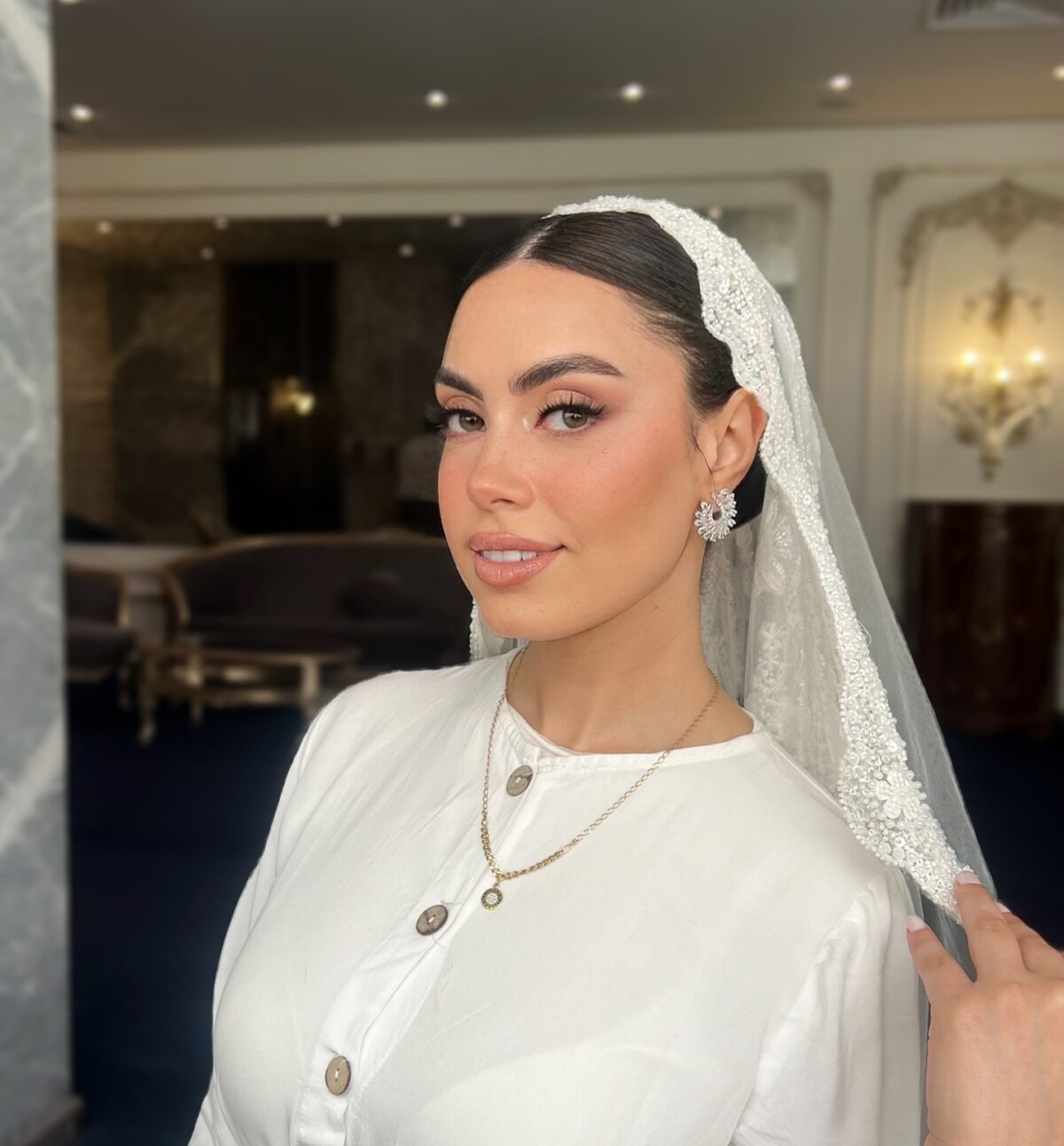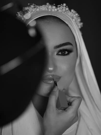 من أول ما تتعامل معاها، هتلاحظي إنها بتحب التفاصيل وبتسمعك كويس جدًا علشان تفهم شخصيتك وستايلك. أول خطوة عندها دايمًا جلسة استشارة قبل المناسبة، بتتعرف فيها على نوع بشرتك، ستايل الفستان، والإضاءة اللي هتكوني فيها سواء في القاعة أو في جلسة التصوير. وبعد كده بتجرب أكتر من درجة فاونديشن وألوان ظلال عيون لحد ما توصل معاكِ للّوك المثالي اللي يناسبك.