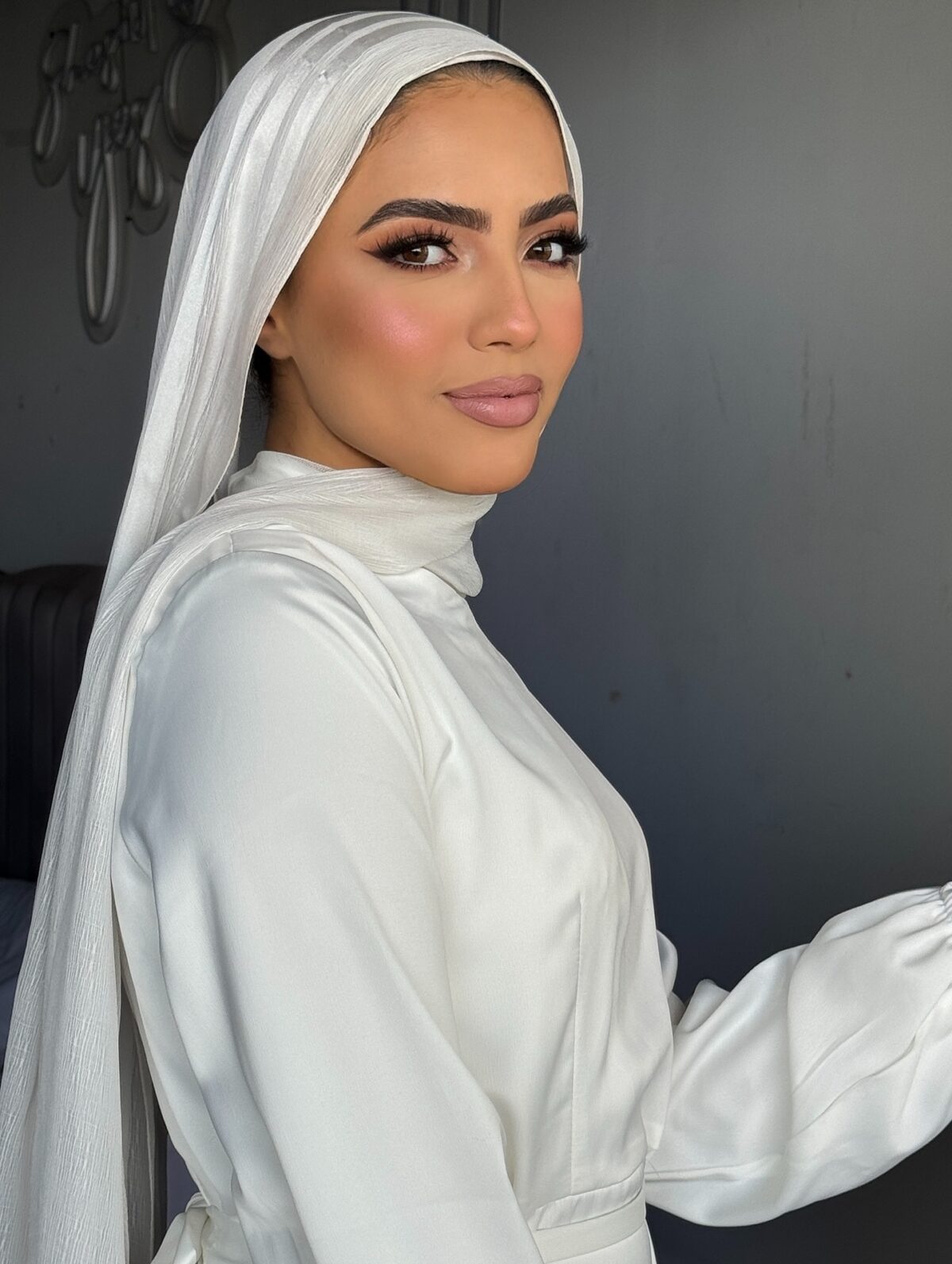 رباب عندها خبرة في مكياج العرايس وده من أكتر الخدمات اللي البنات بيدوروا عليها عندها. بتشتغل بخطوات مدروسة عشان توصل لإطلالة متكاملة تناسب الفستان وتسريحة الشعر وطبيعة العروسة نفسها. دايمًا بتركز على التفاصيل الصغيرة زي اختيار الألوان المناسبة للبشرة والهايلايت اللي يدي إشراقة ناعمة، وده بيخلي العروسة تبان بشكل طبيعي وأنيق في نفس الوقت.