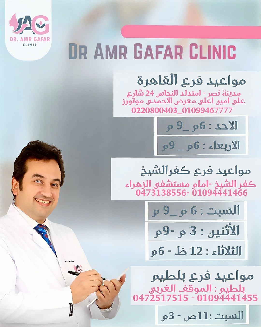 كل عريس وعروسة قبل الفرح بيبقوا نفسهم يطلعوا في أحسن شكل، وعلشان كده بيدوروا على دكتور تجميل يكون عنده خبرة وذوق في شغله علشان النتيجة تطلع طبيعية ومريحة. Dr. Amr Gafar Clinics من الأماكن اللي بقت معروفة جدًا في مجال التجميل والعناية بالبشرة، لأنها بتعتمد على خبرة طبية كبيرة وتقنيات حديثة بتدي نتائج دقيقة وآمنة، وده اللي بيخليها من أول الاختيارات لأي حد بيجهز ليومه الكبير.