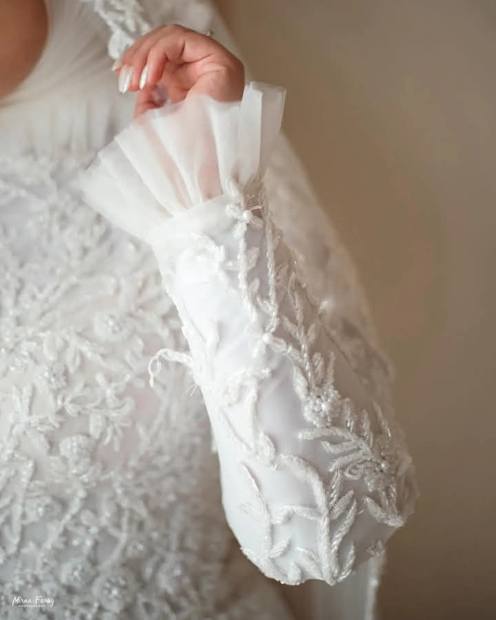 المميز كمان إن في تصميمات خاصة بالأتيليه، يعني مش هتشوفي نفس الموديلات في أماكن تانية. وكل موديل معمول بدقة، من الخامة للتفصيلات الصغيرة زي الأزرار أو الكسرات أو التل اللي معمول بطريقة مبتكرة. الفساتين بتتنفذ بخامات فخمة زي الدانتيل والشيفون والساتان والتول، والقصات بتتظبط على الجسم علشان تبرز جماله من غير ما تبقى مبالغ فيها.