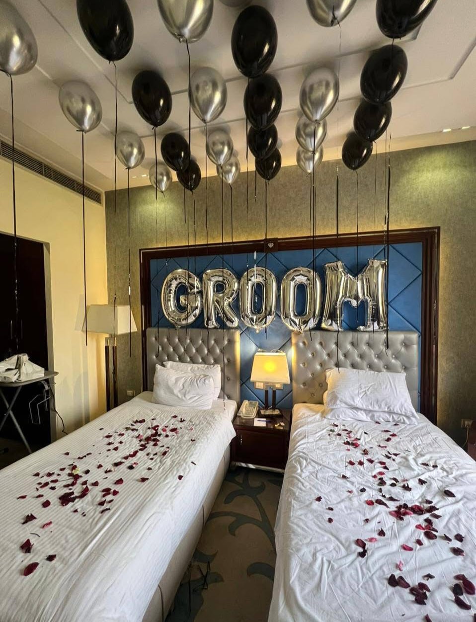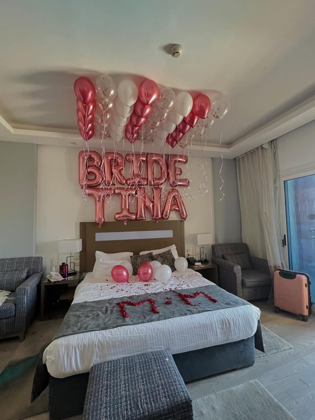 الديكور عندهم مختلف بشكل واضح. بدل الاعتماد على ديكورات تقليدية بس، هما بيضيفوا لمسة جديدة باستخدام البالونات بأشكال مبتكرة. الكوشة ممكن تتزين بأقواس بالونات بألوان متناغمة، الطاولات بيتعمل عليها سنتر بيس من بالونات متناسبة مع باقي الثيم، وركن التصوير بيتحول لزاوية مليانة ألوان مبهجة تدي للصور طابع خاص.